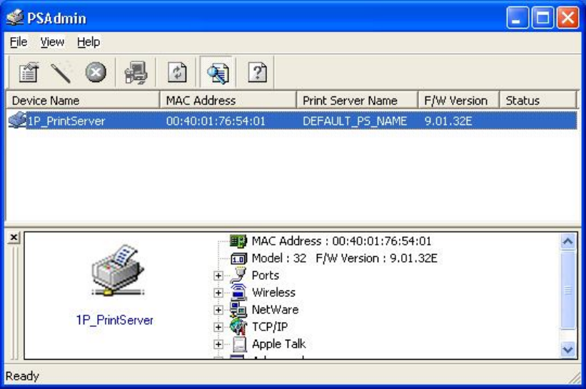 2. Check all the information of the print server by running PSAdmin.