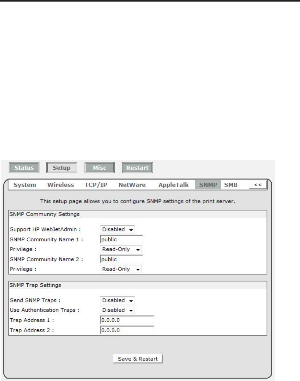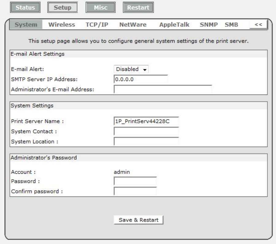 5. The print server will restart and load default automatically.