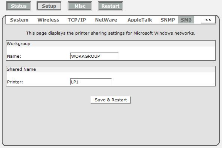 Please assign the same SMB name to your print server. If print server uses the different