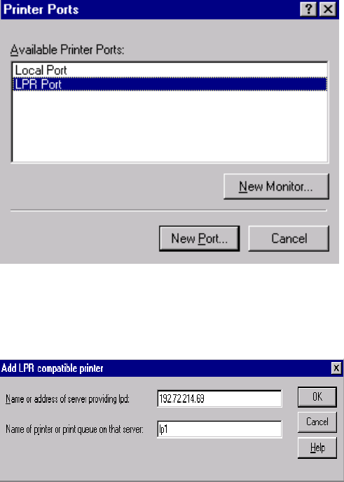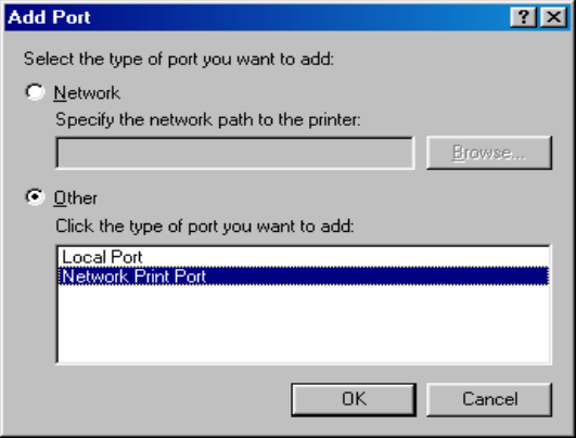 the Network Print Port under Windows 95/98, please redirect the printer named