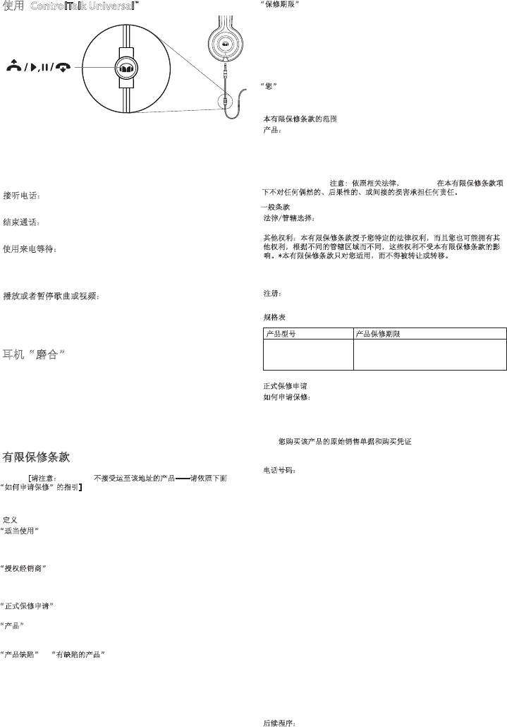 响。*本有限保修条款只对您适用,而不得被转让或转移。如果本有限保修