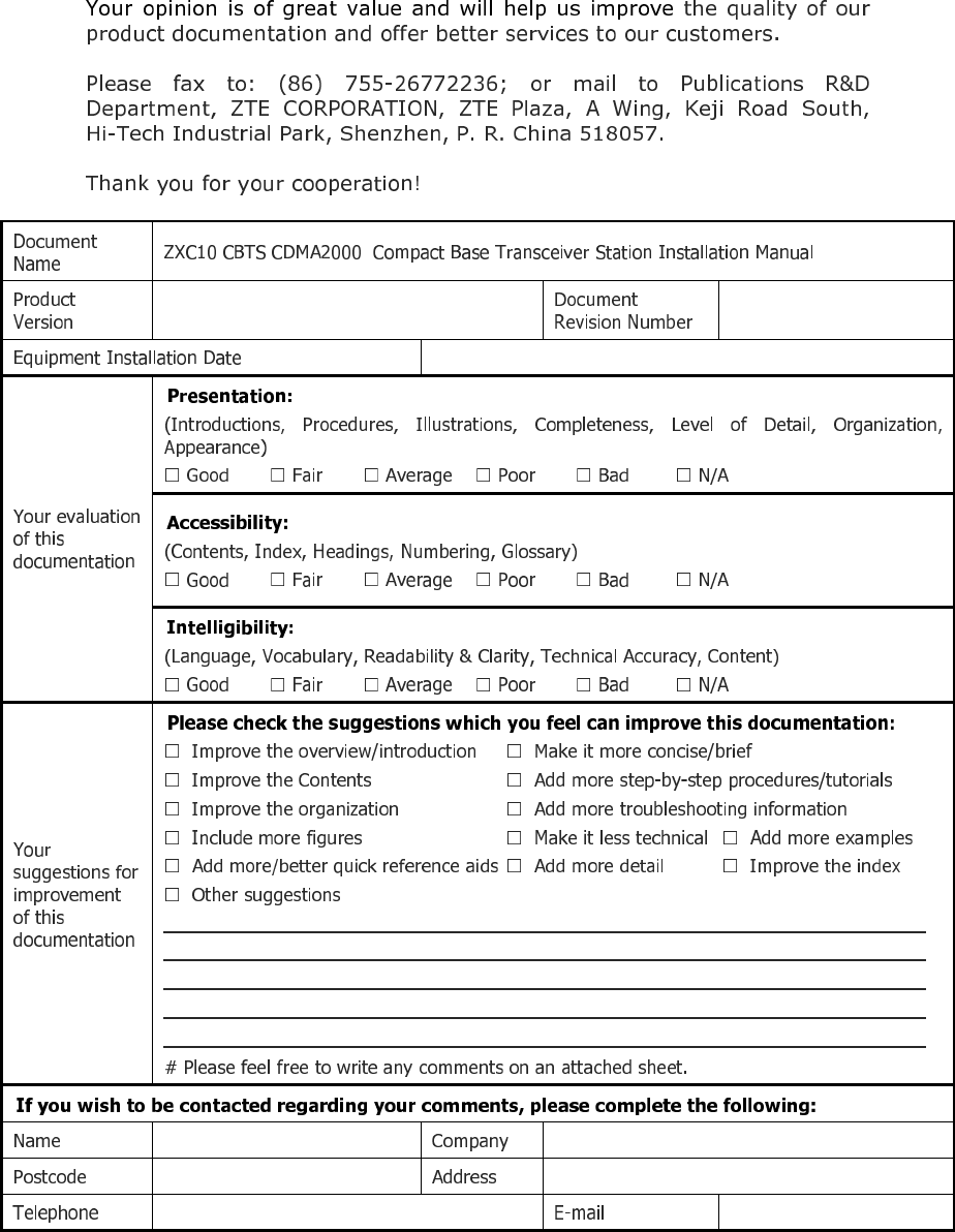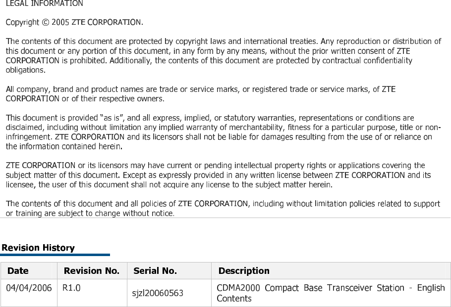 ZTE CBTSI219 CDMA 2000 Compact Base Transceiver Station-I2 User Manual Q78 CBTSI28A