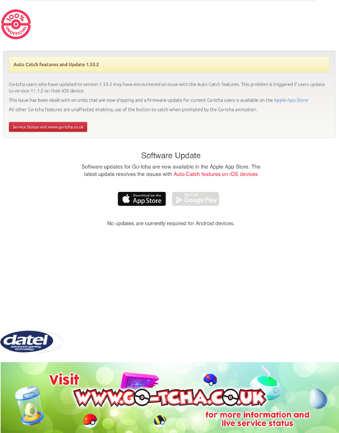 the property of their respective owners. Go-tcha for Pokémon Go is a 100% unofficial product and is NOT sponsored, endorsed or approved by NINTENDO, nor any