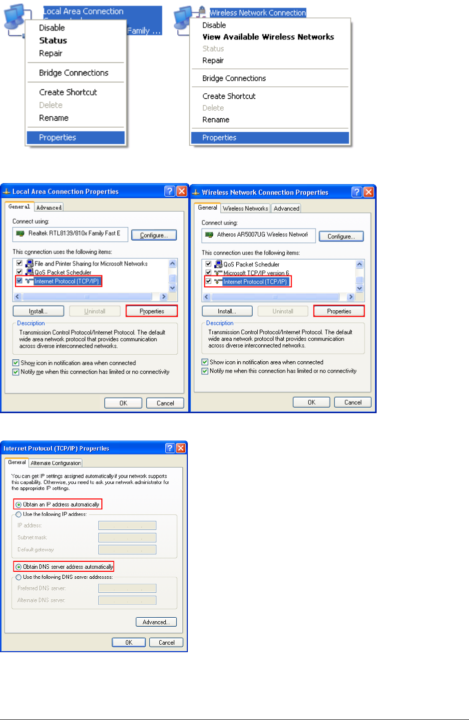 Follow the following steps and figures for Windows XP to configure the Internet Protocol for