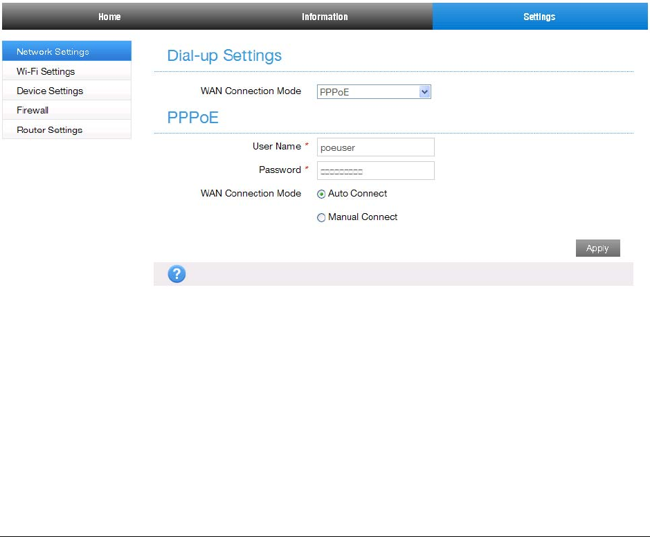 Select Settings > Network Settings to change the WAN connection mode and set the detail