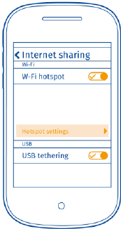 To allow Internet sharing through Wi-Fi, tap Hotspot settings to