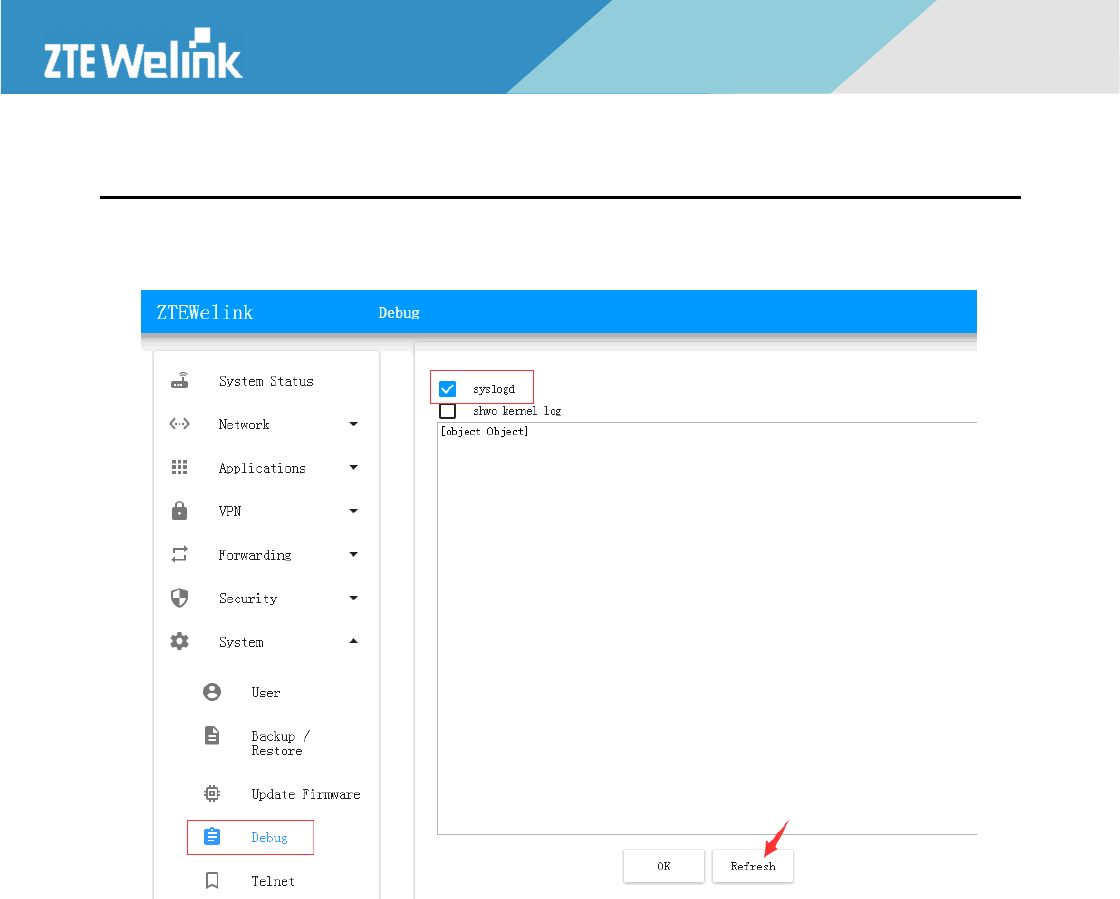 Check the "syslogd" is all log information, check the "Show kernel log" is the only check kernel information, This part describes