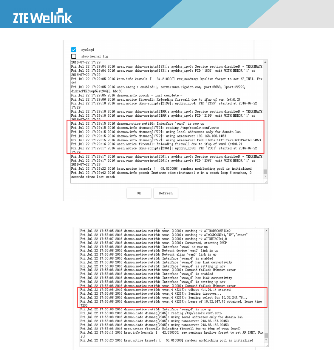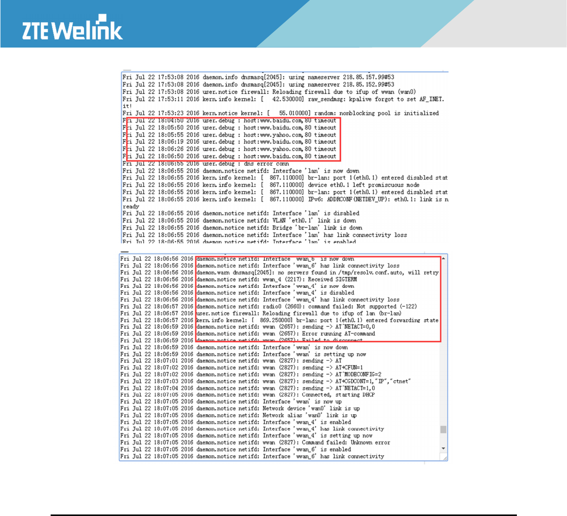 Wireless dial-up log is shown in Fig., The red box after successfully dialing line information.