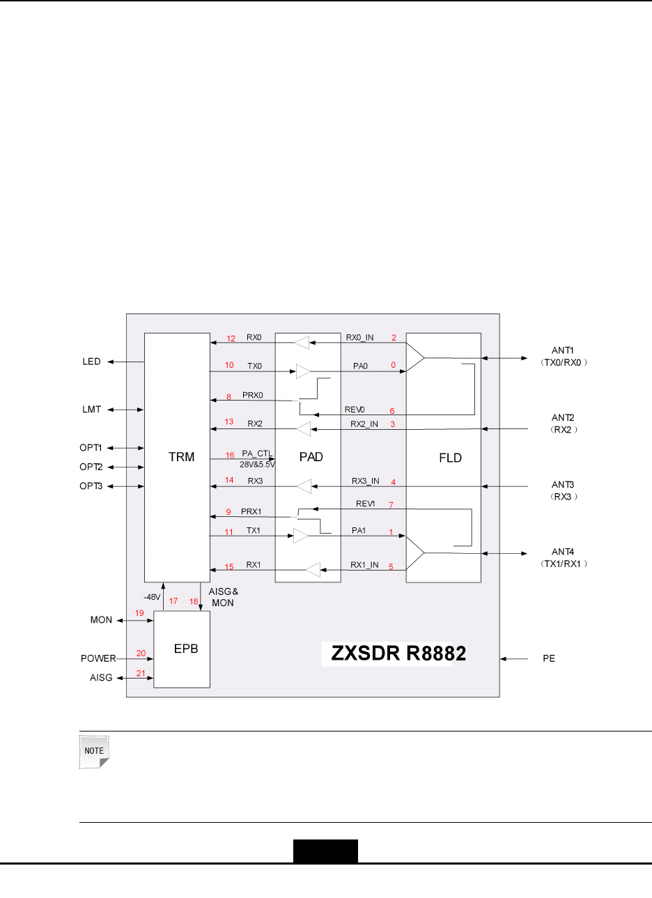 TheZXSDRR8882workswithaBBUtoconstitutethedistributedSDRBTS,thatis,