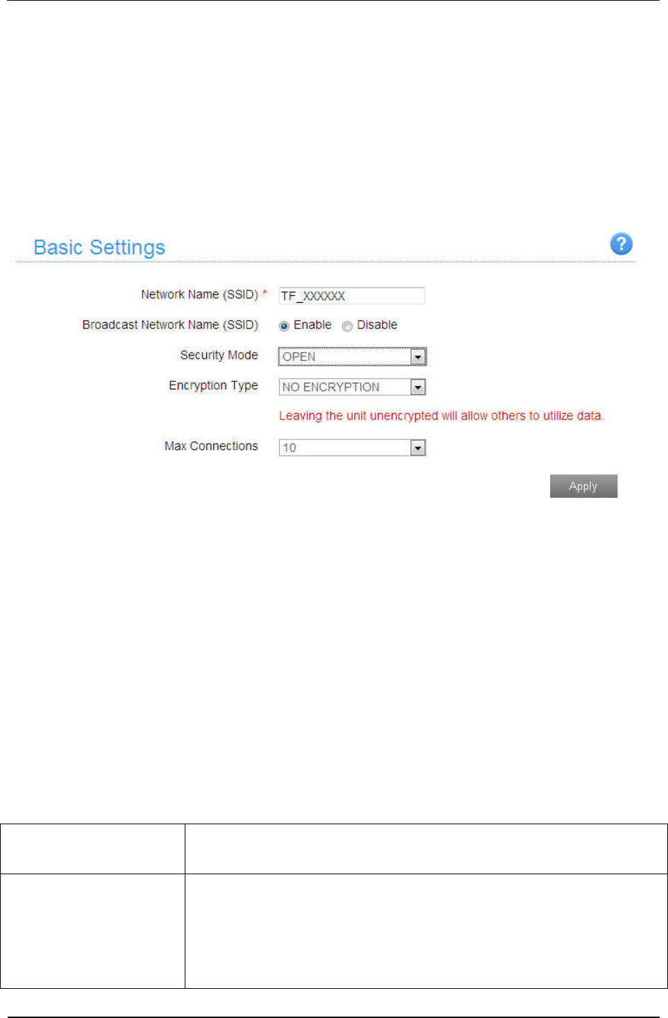About the password The default Wi-Fi connection is open, do not need to enter password.
