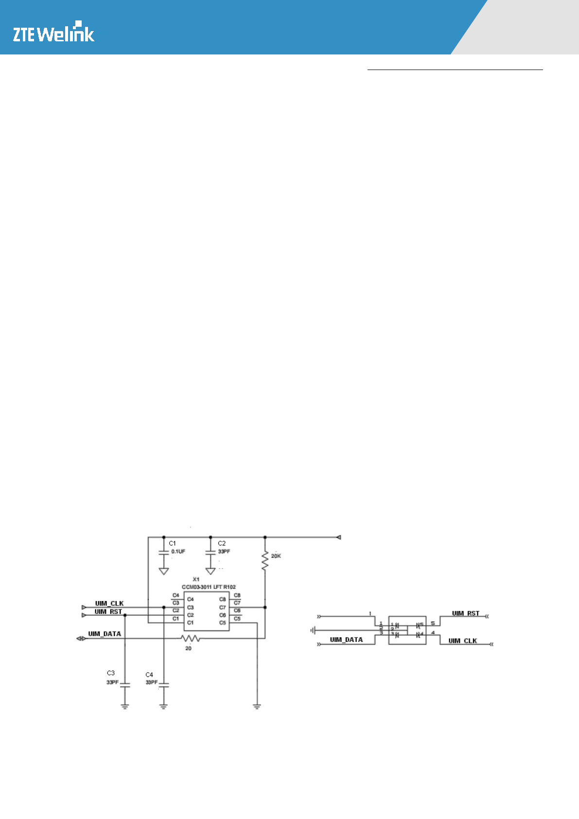 board, connecting to: power, ground, UIM_DATA, USIM_CMD and UIM_CLK. It supports the