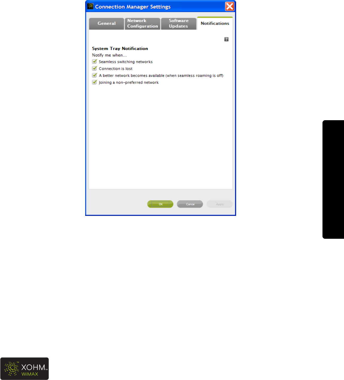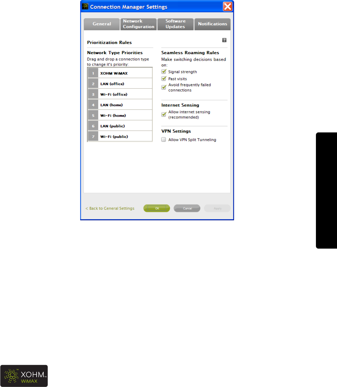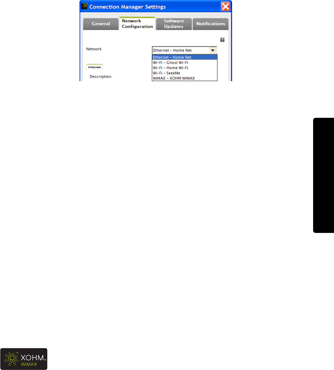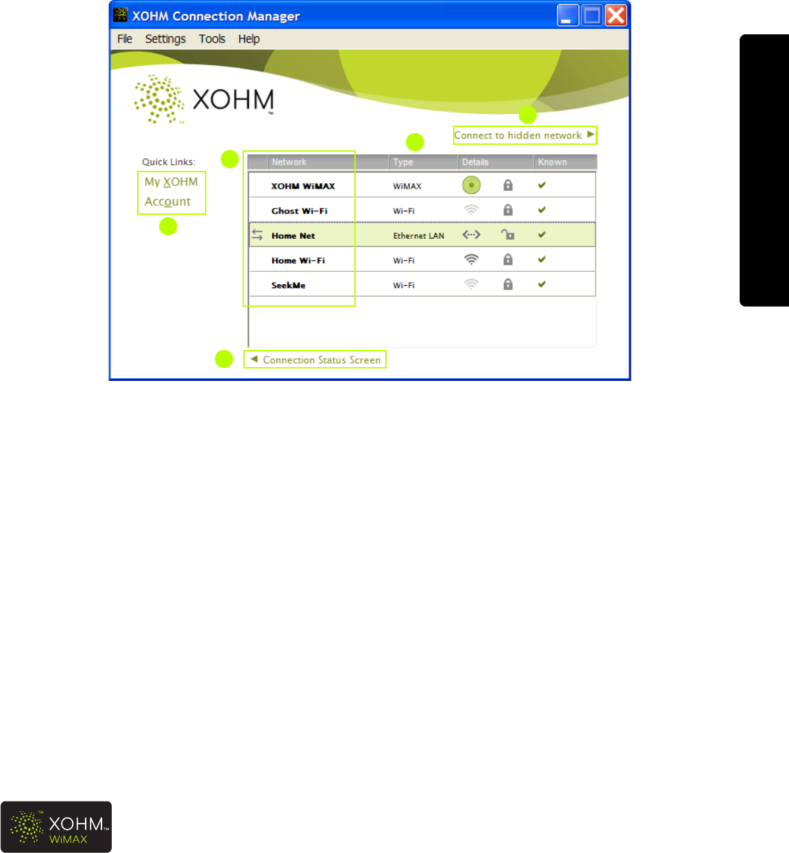 XOHM Connection Manager manages XOHM WiMAX connections, Wi-Fi connections,