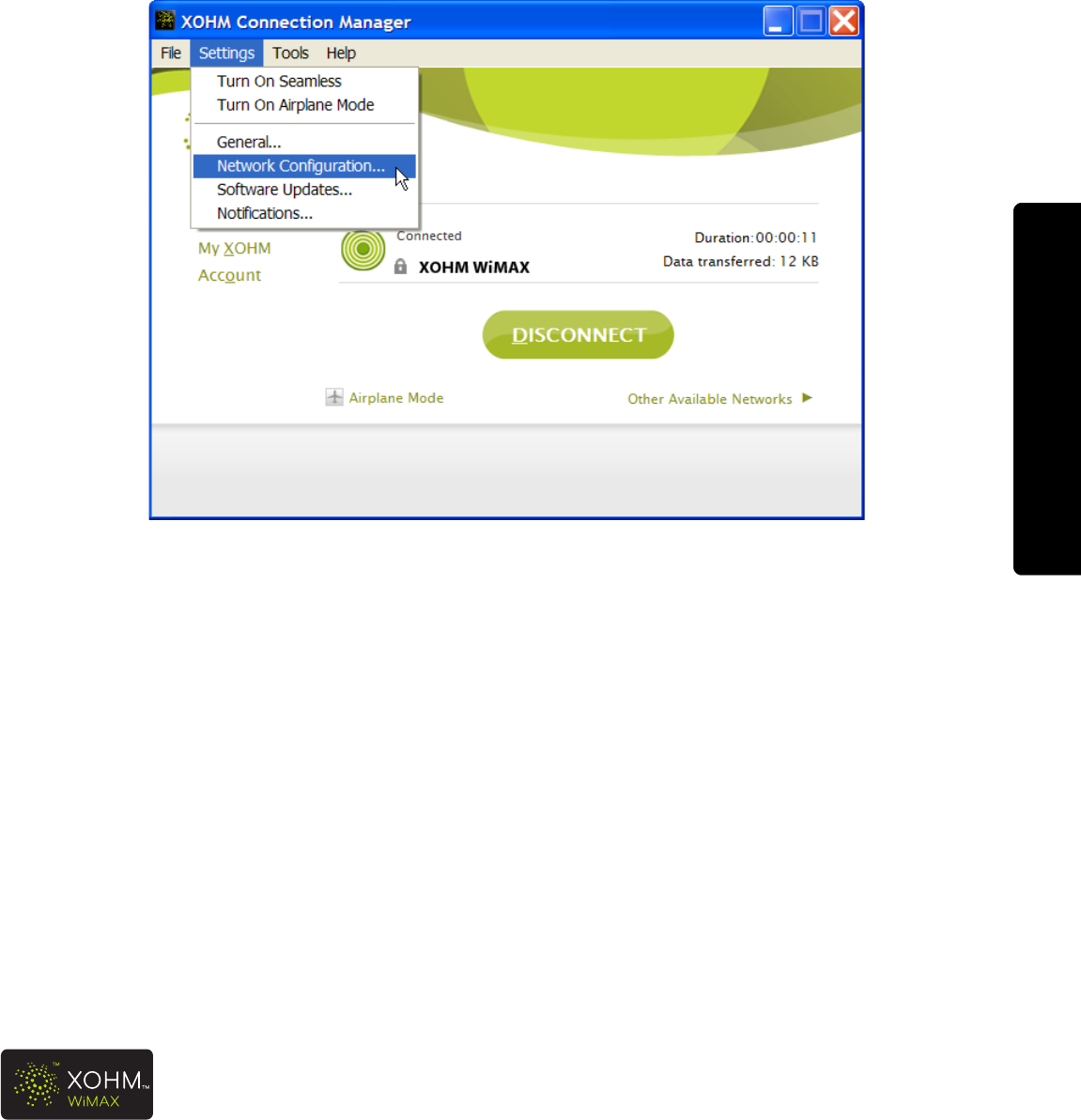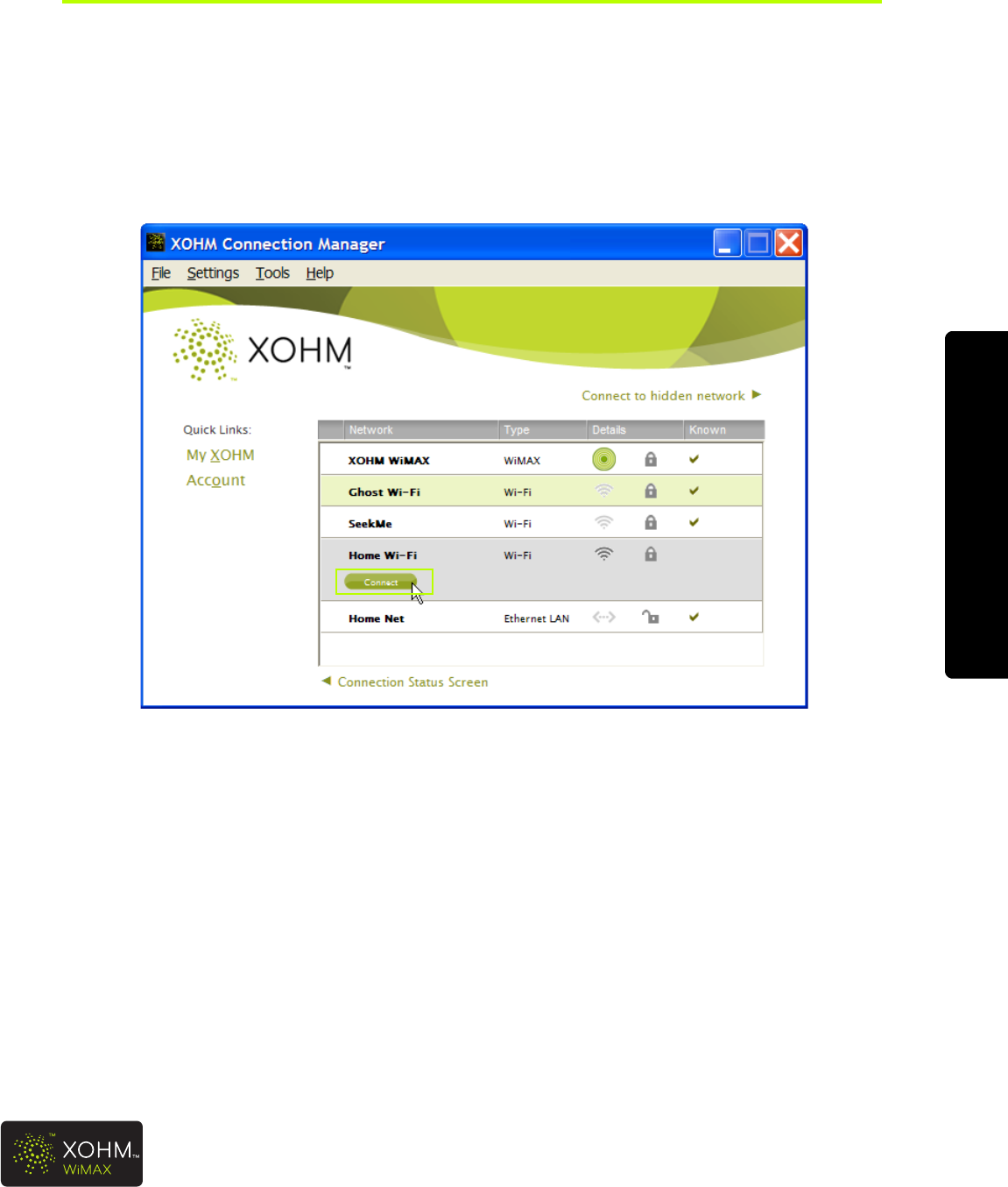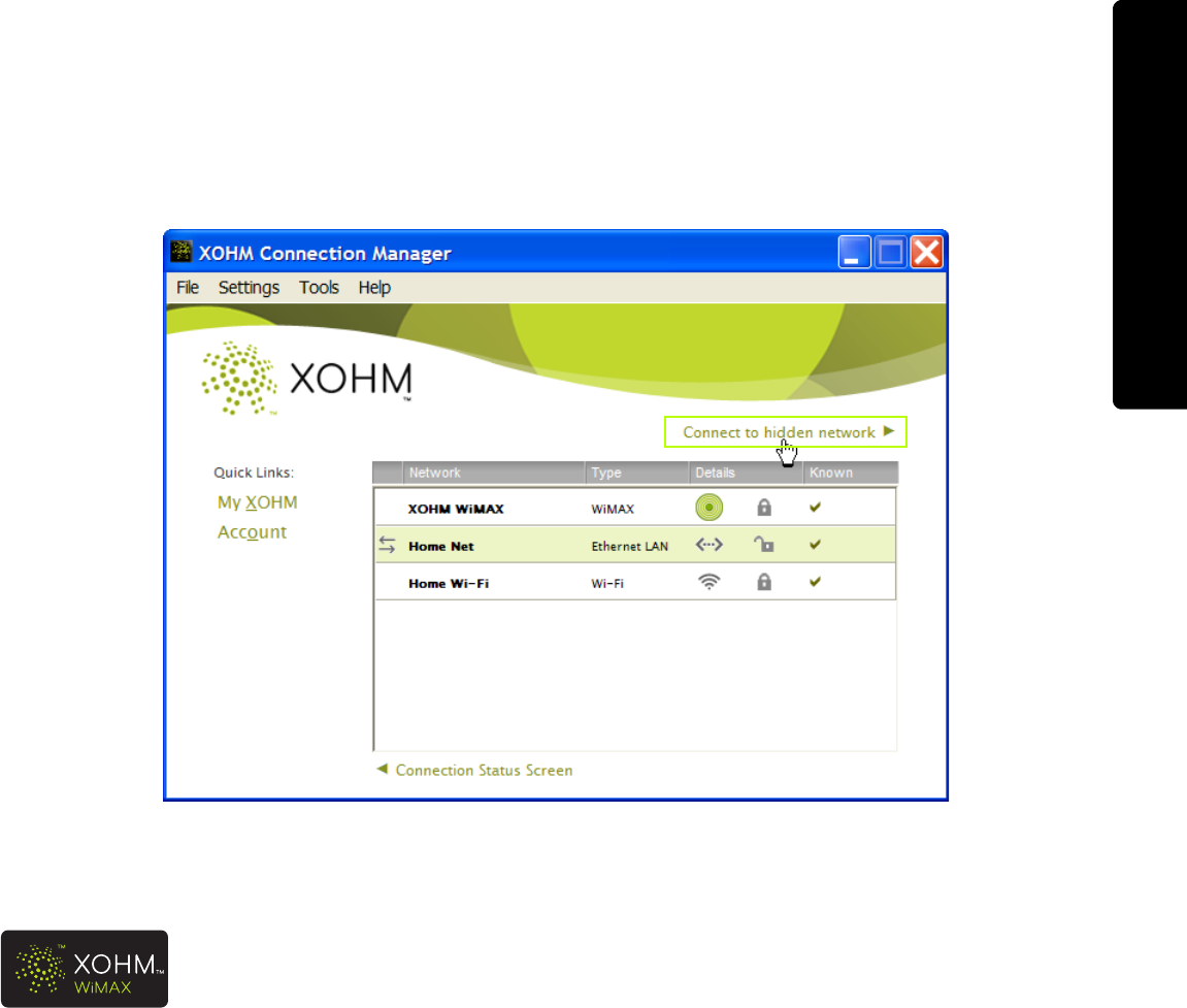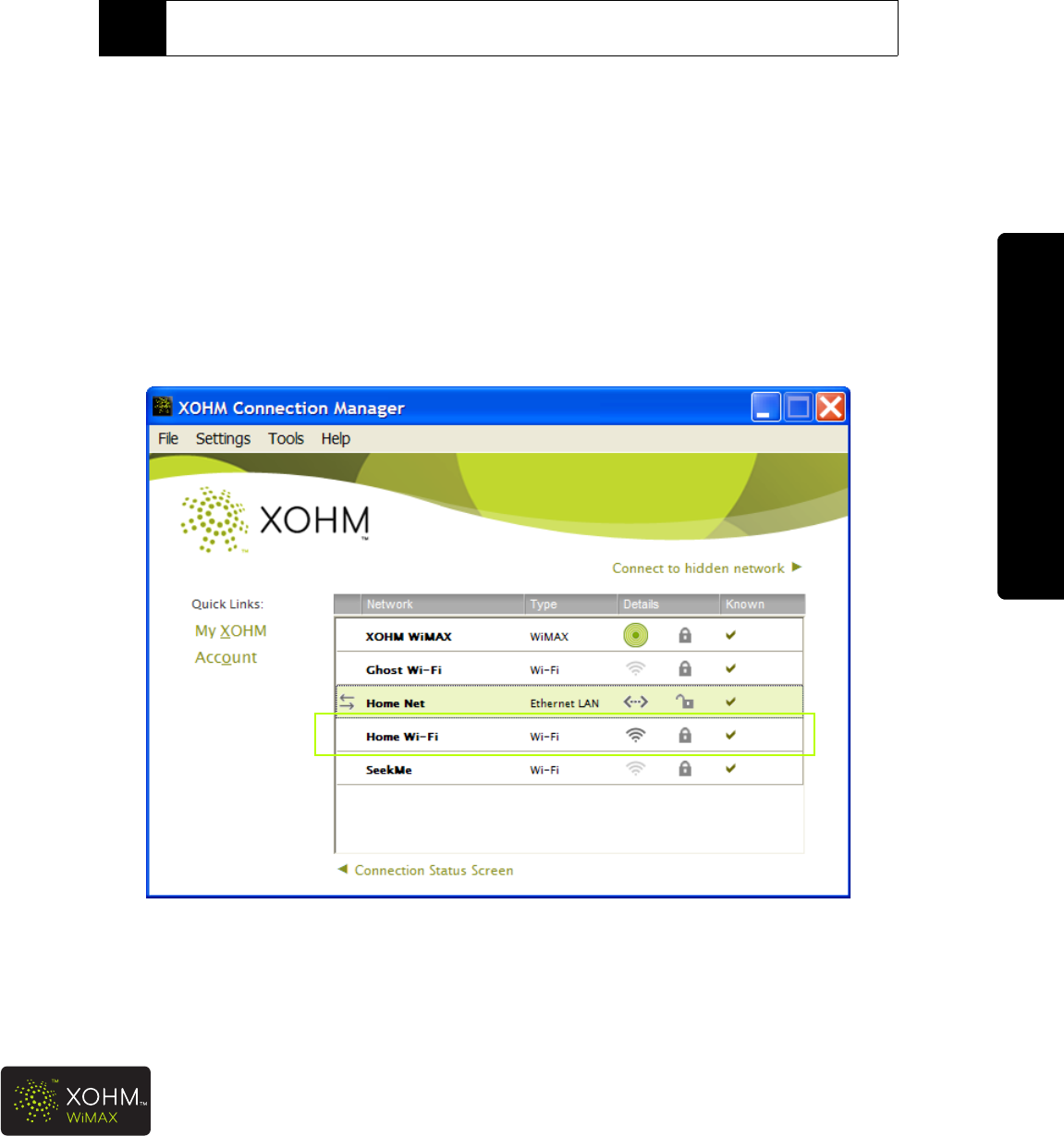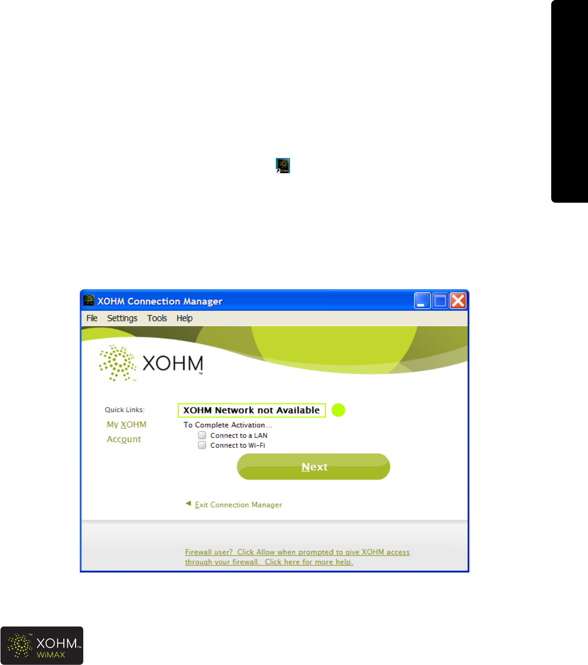 then launch that card’s connection manager program. To return to XOHM WiMAX service,