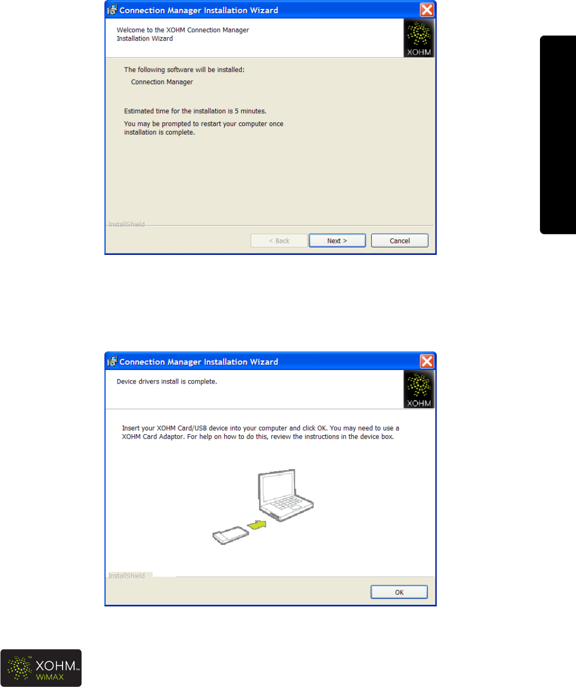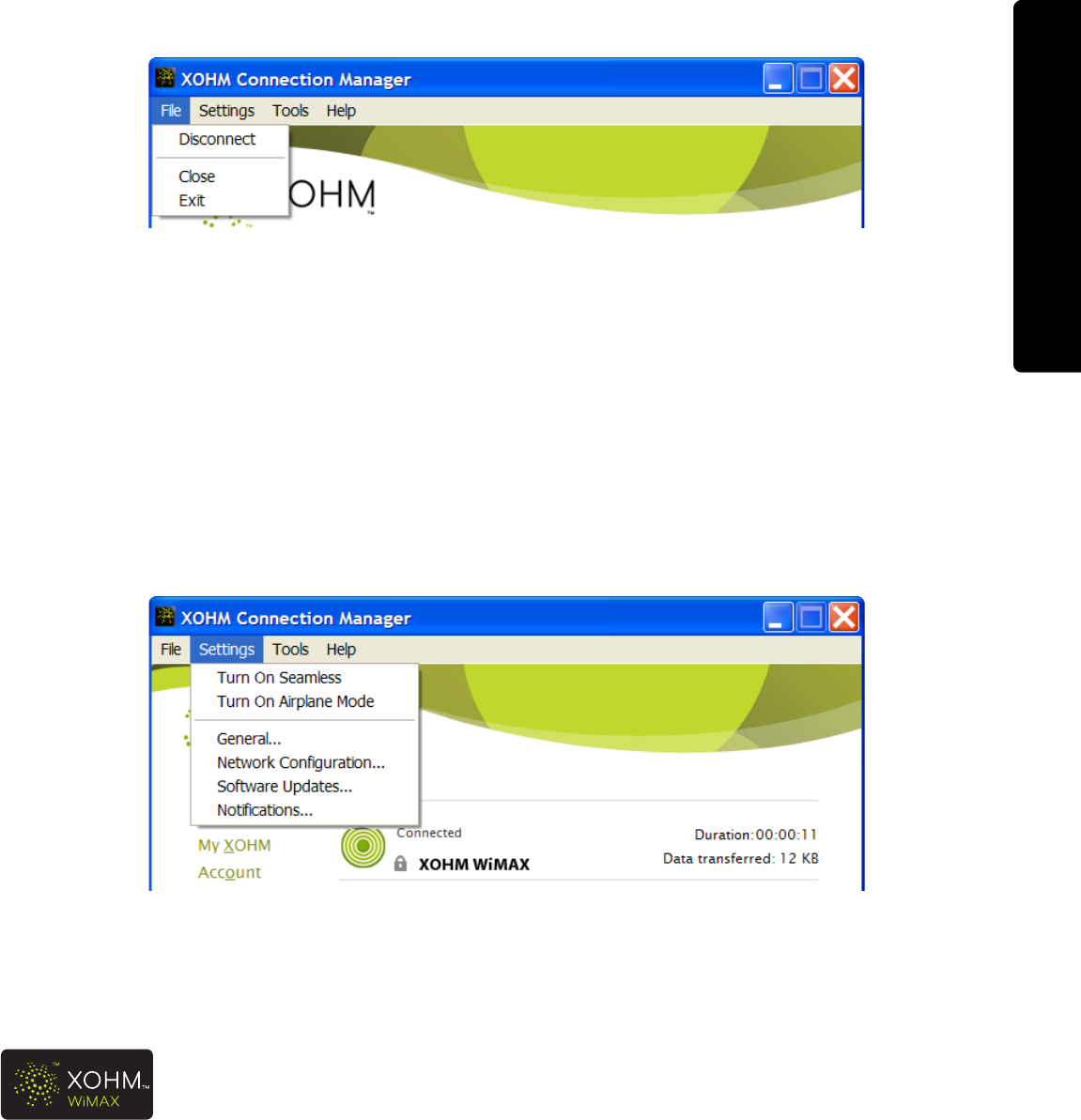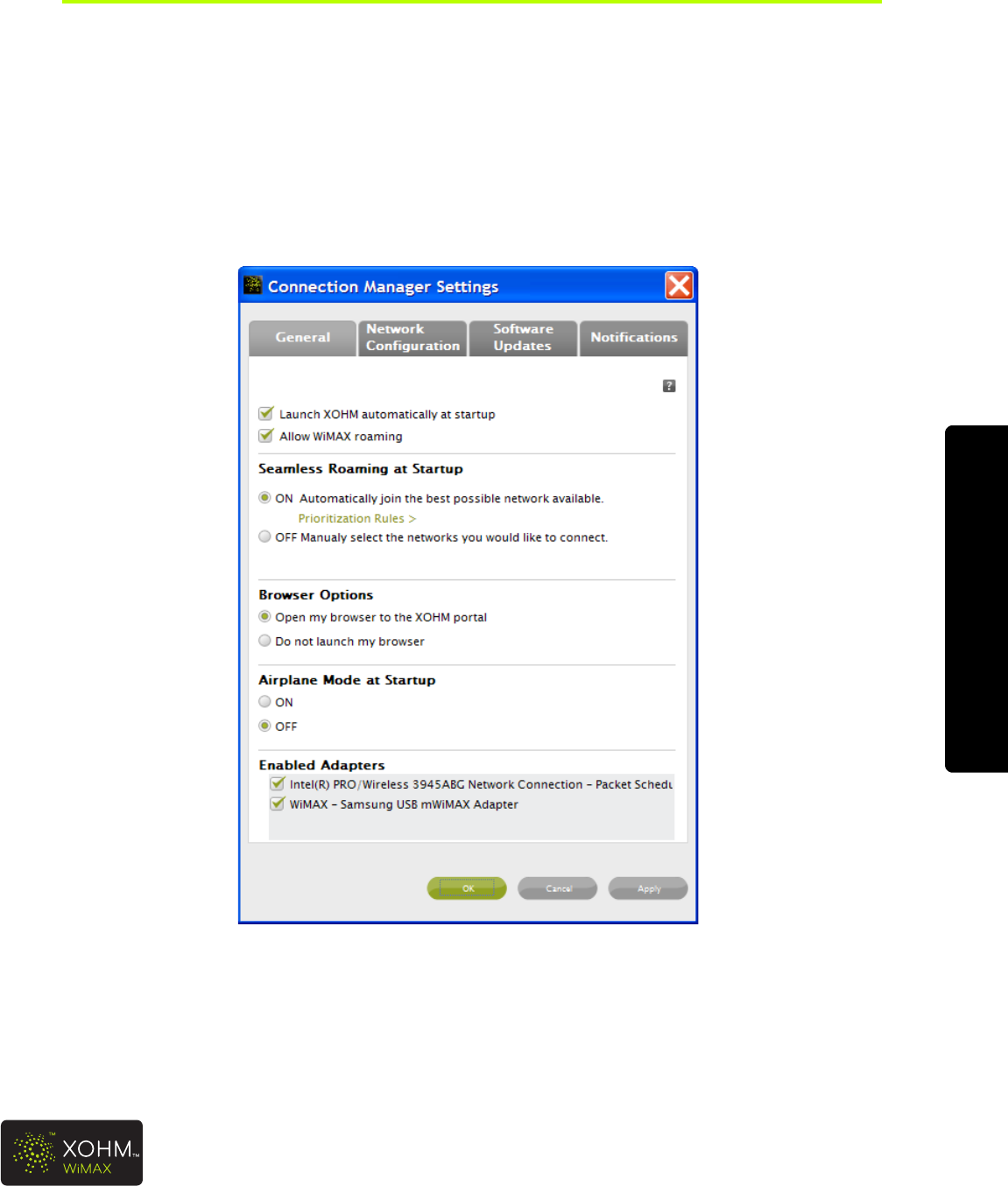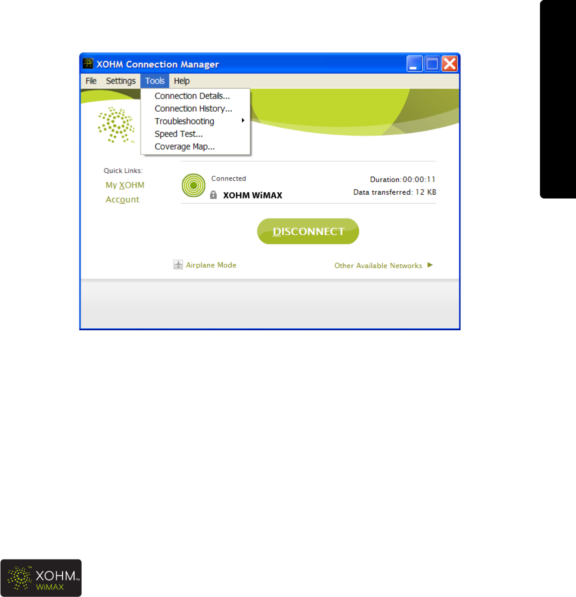 then launch that card’s connection manager program. To return to XOHM WiMAX service,