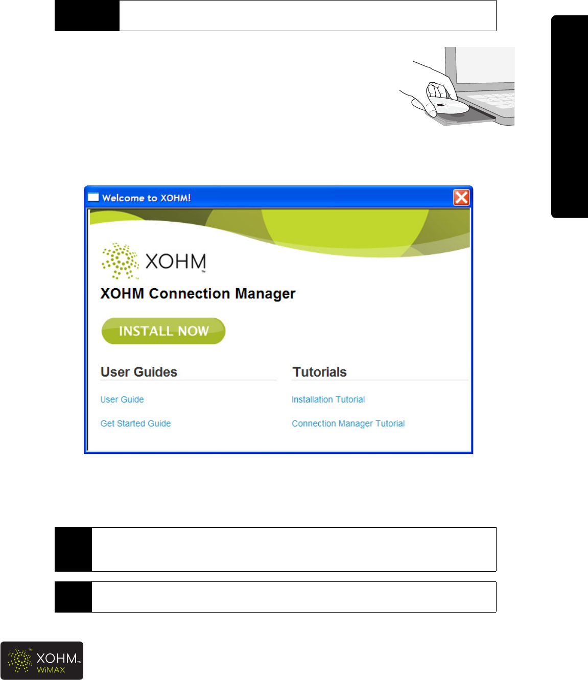 XOHM Connection Manager software, connect your XOHM Card to your computer,