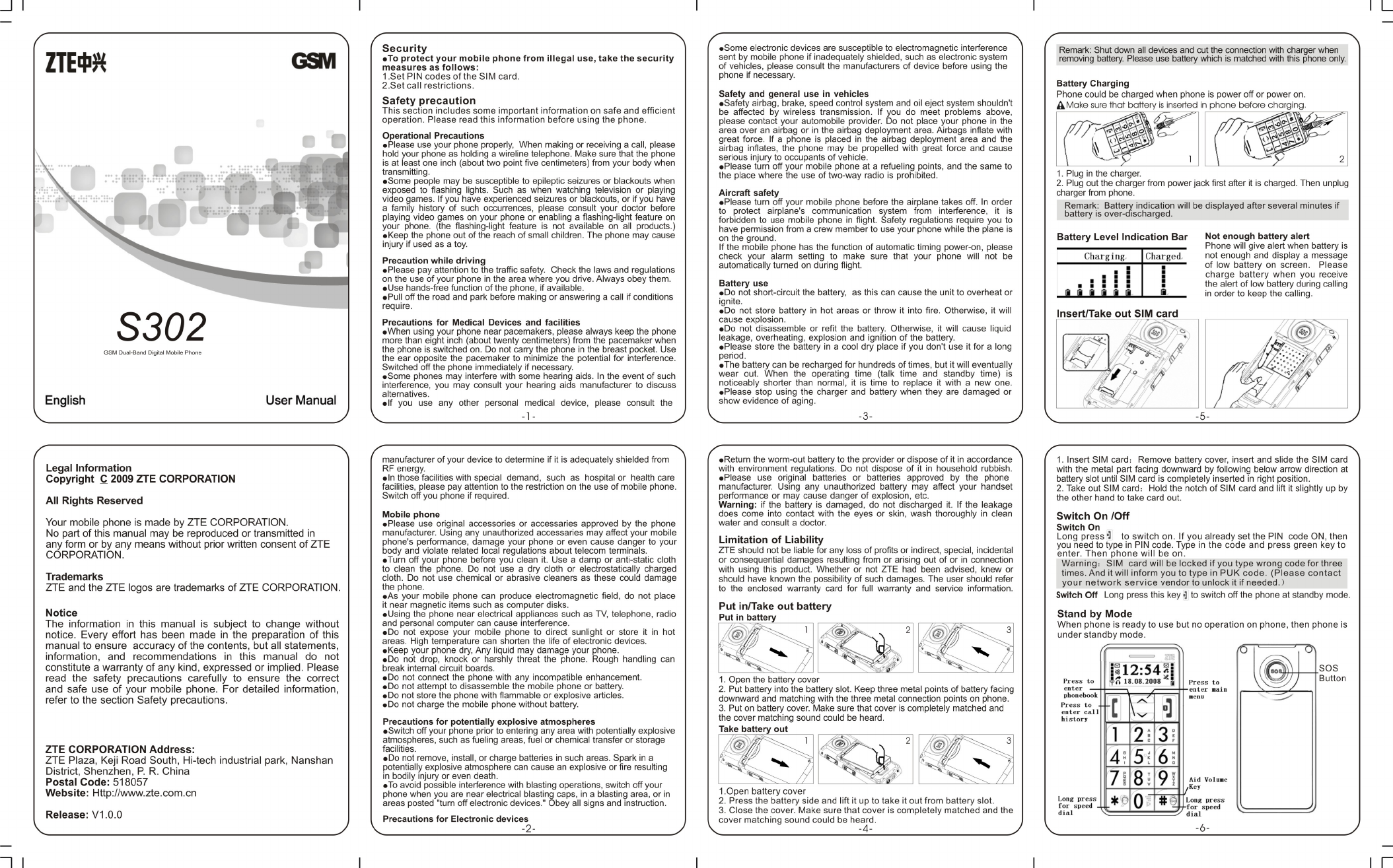 ZTE ZTEGS302 GSM Dual-band Digital Mobile Phone User Manual part1