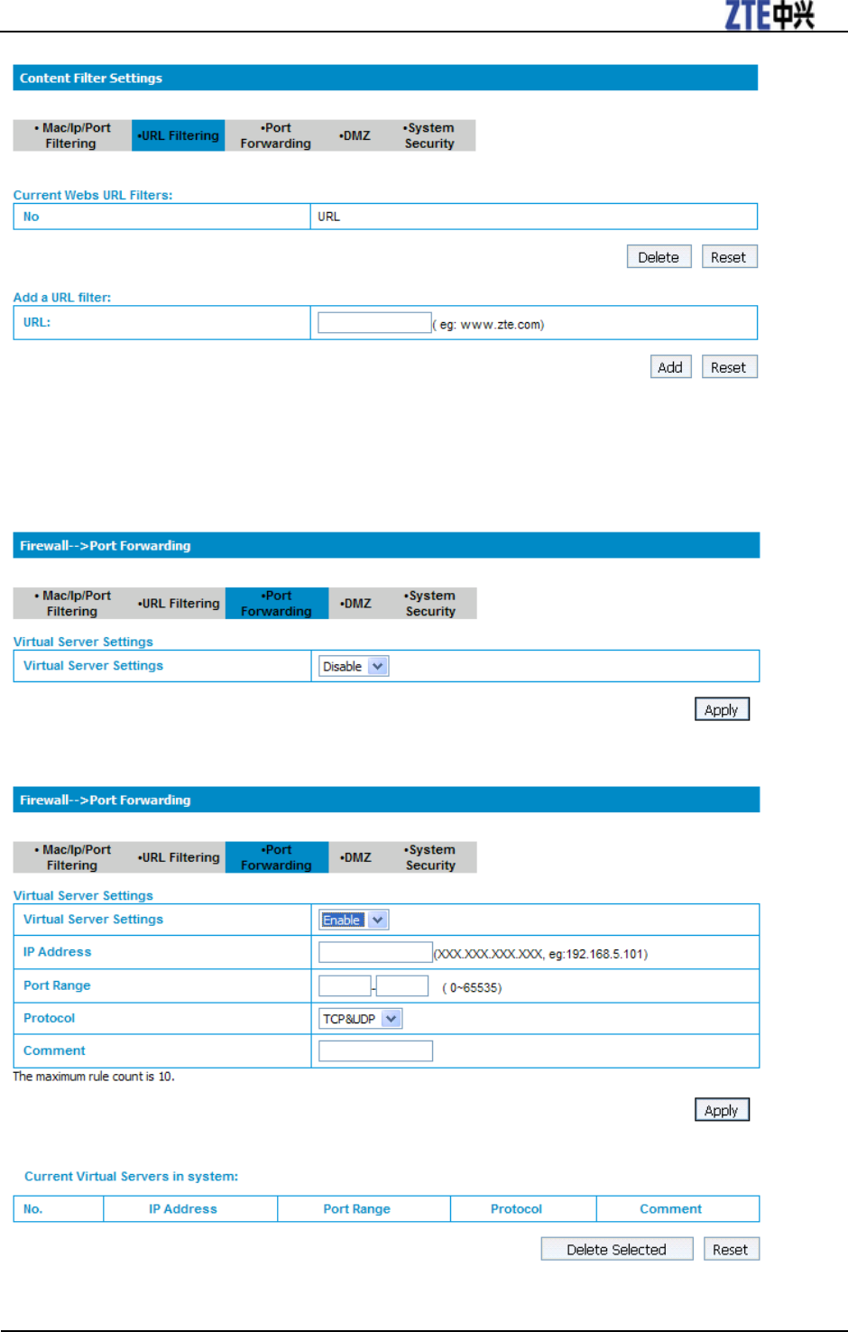 Select Firewall > URL Filtering, the URL Filtering is shown in the following figure: