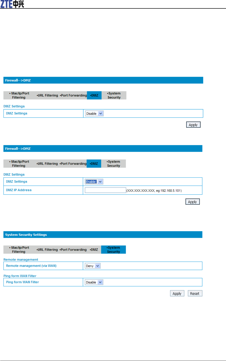 Select Firewall > DMZ, the DMZ setting is shown in the following figure: