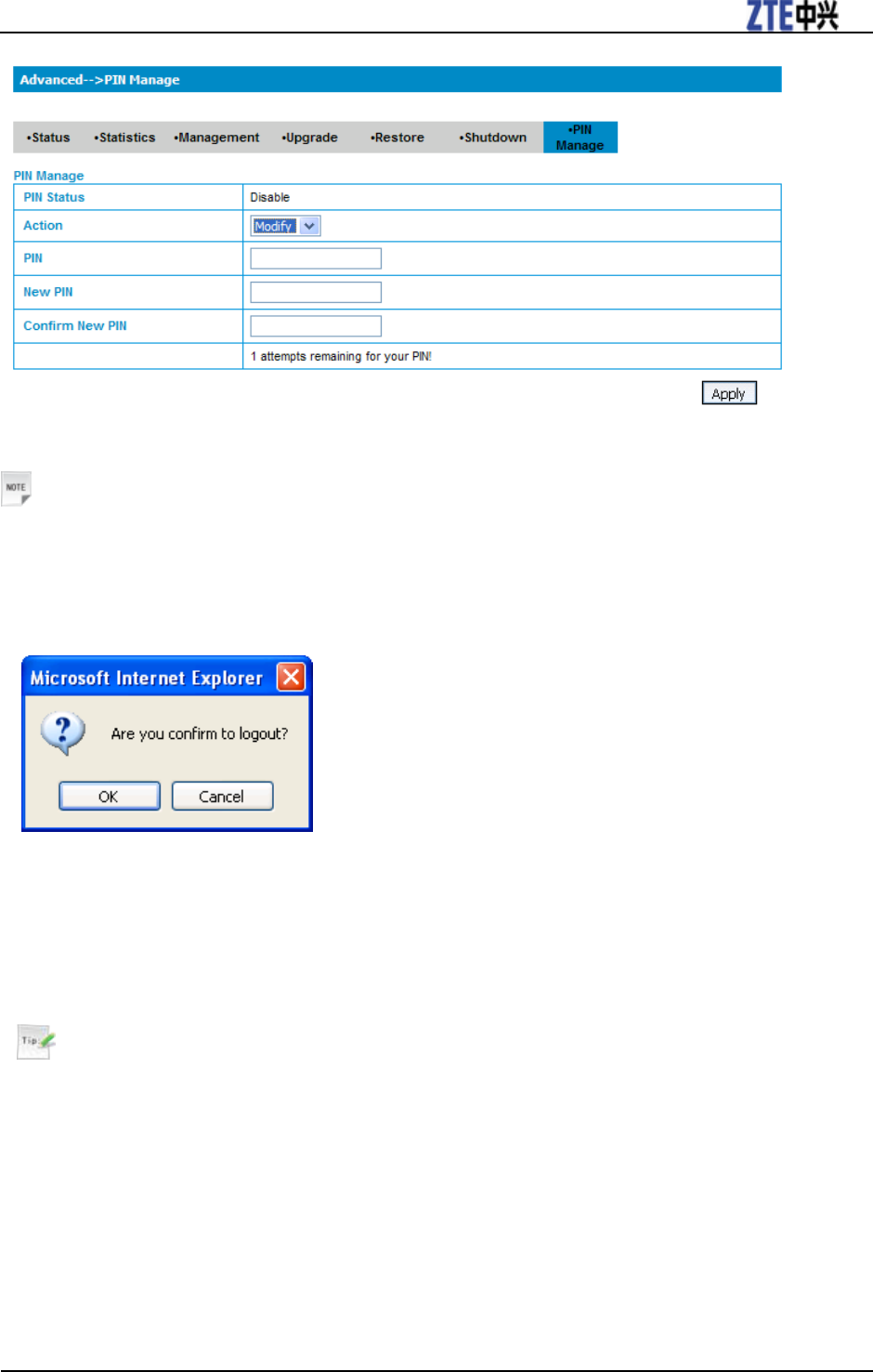 1. Select Logout, a pop-up windows will appear as shown in the following figure:
