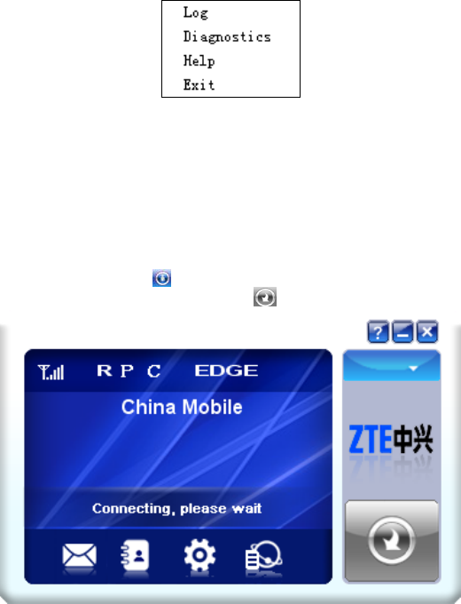 After the modem is initialized, the main interface of the connection manager
