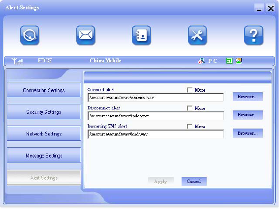 You can set “Connect alert, Disconnect alert and Incoming SMS