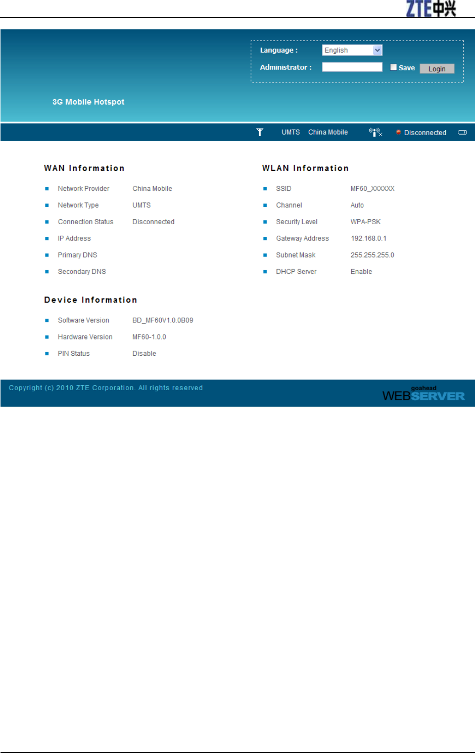 ZTE MF60 is a 3G mobile hotspot device, working in EDGE/WCDMA/HSPA network. The client