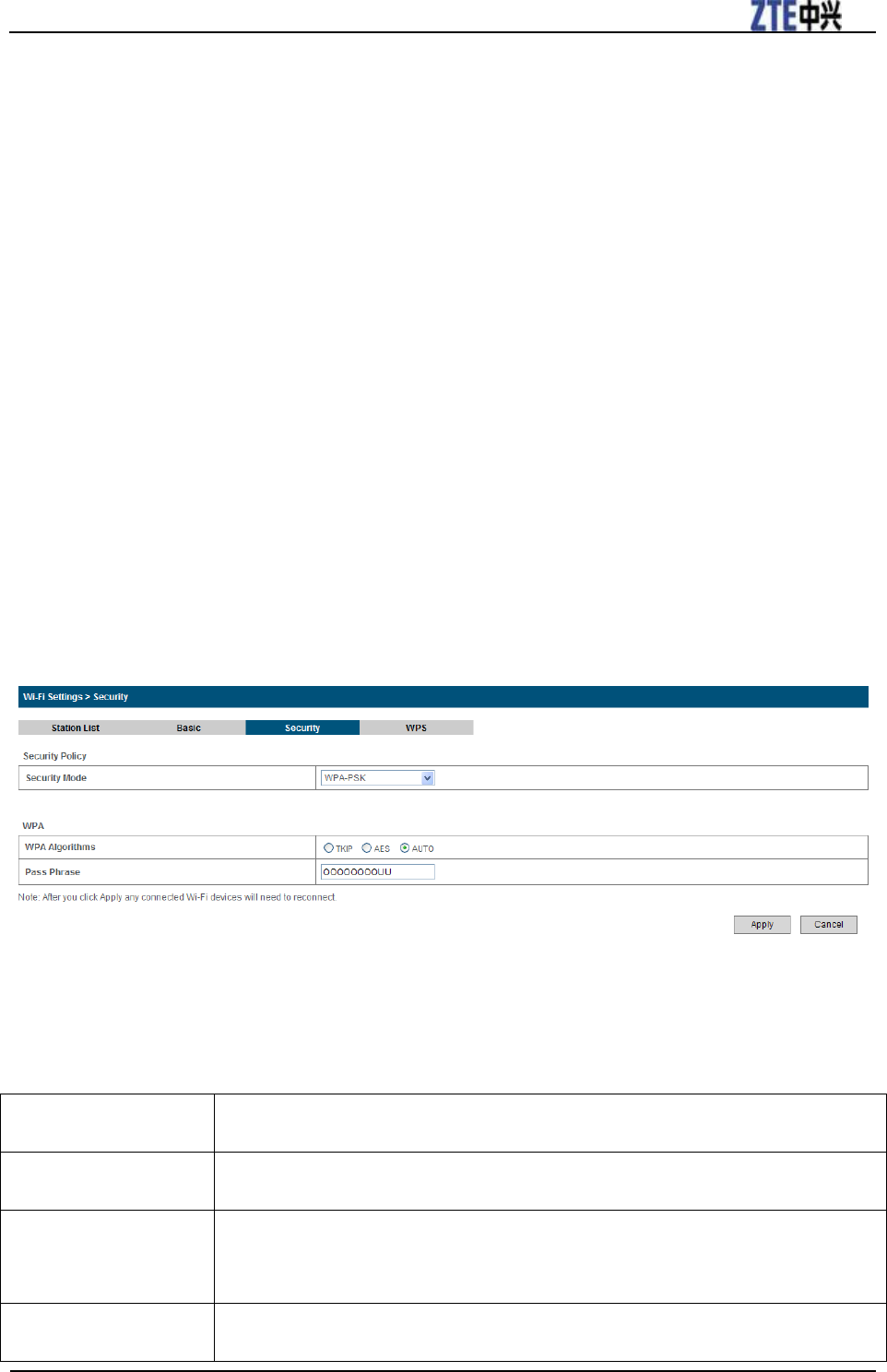 • WPA-PSK: Wi-Fi Protected Access–PreShared Key