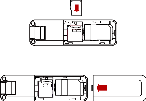 the metal contact side of the MicroSD card facing downwards, shown as the following