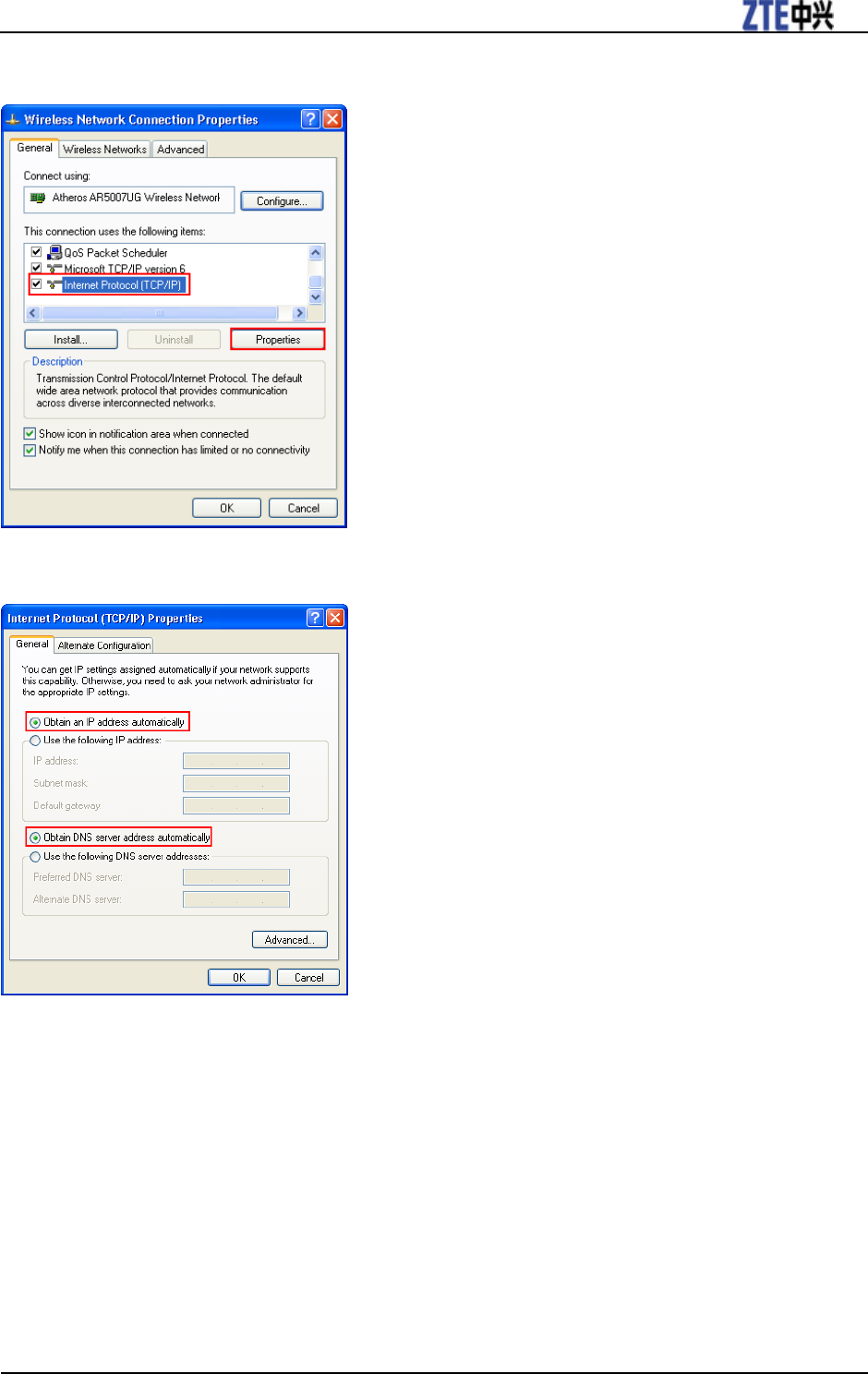 address automatically in the Internet protocol (TCP/IP) properties.