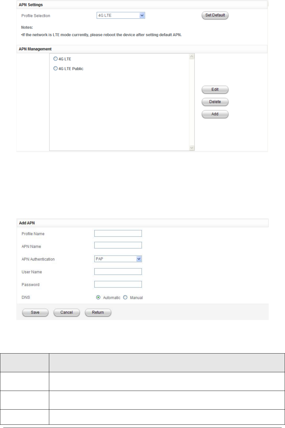 3.6.4APN Settings ................................................................................................... 23