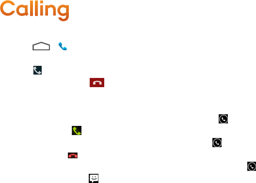 + To reject an incoming call, touch the incoming call icon and drag it to the