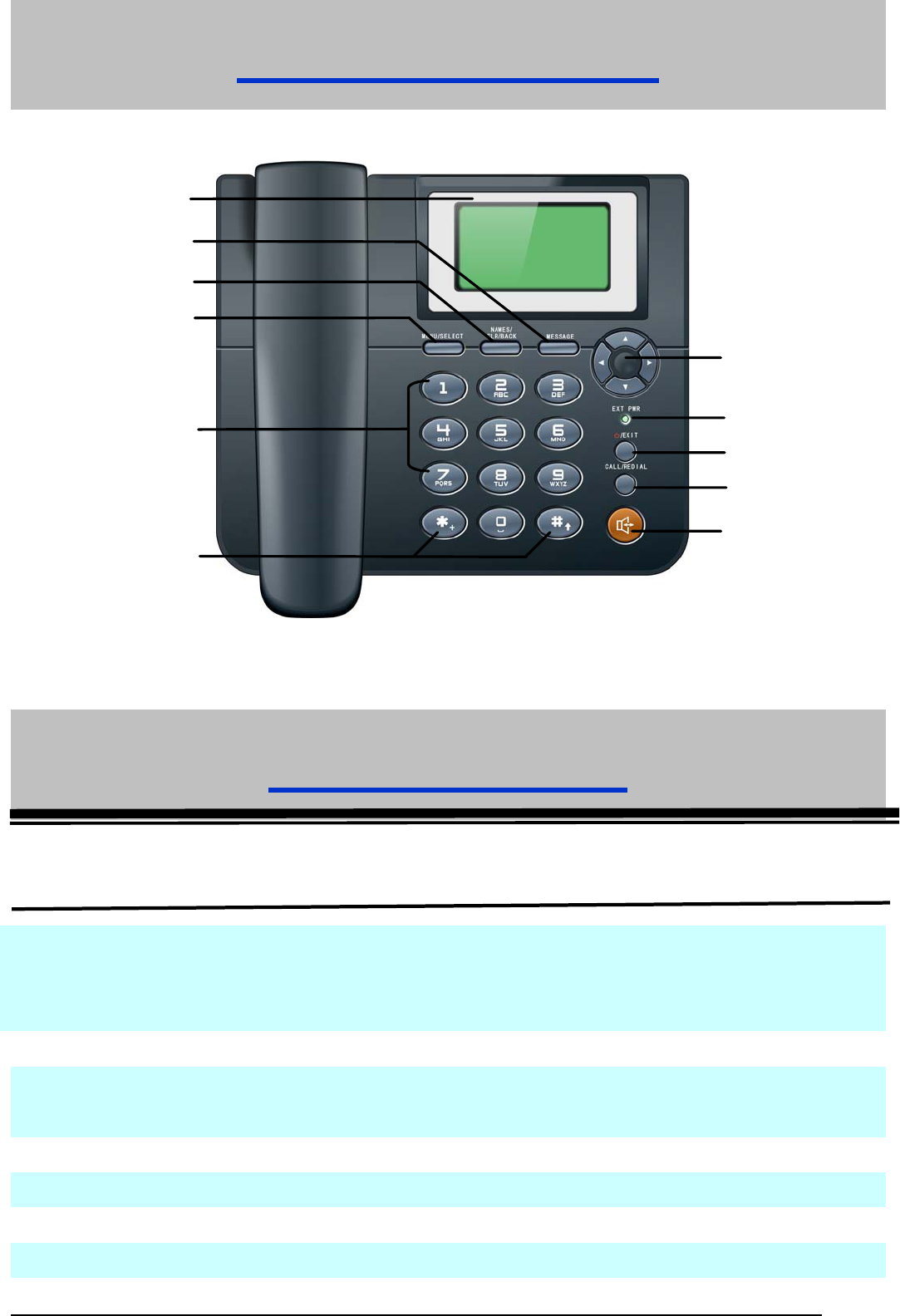EXT PWR Lights on when the phone is connected to external power supply.