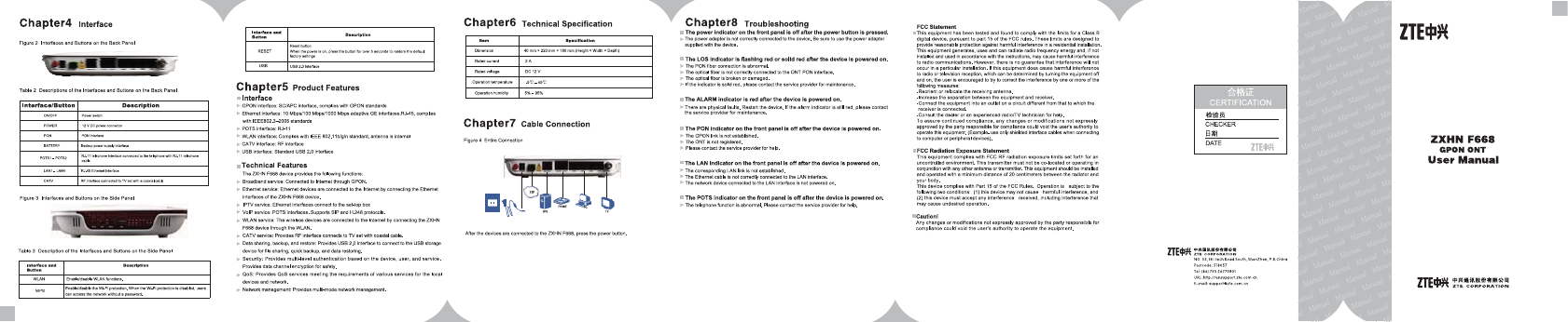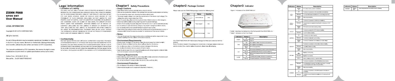 ZTE ZXHNF668 GPON ONT User Manual 956AF250JC 013 08 13