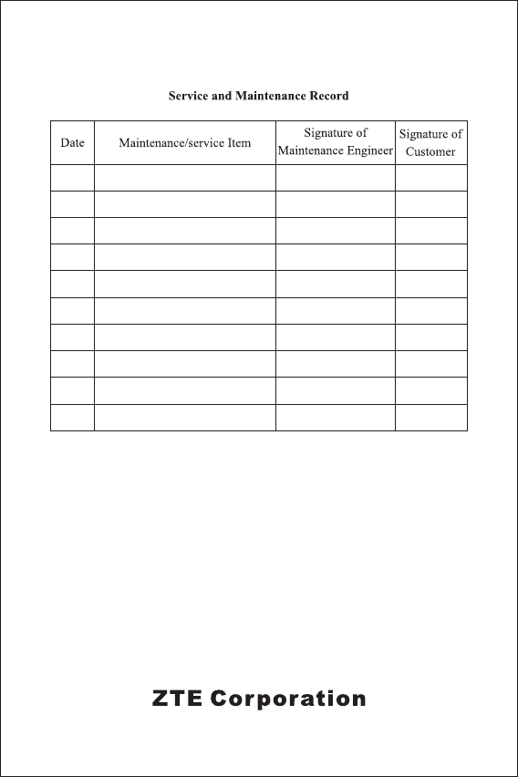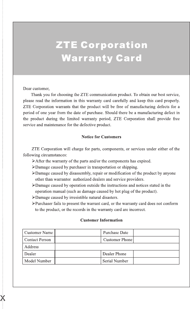 Service Department in accordance with ZTE’s standard parts exchange