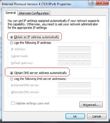 3. Click the Obtain an IP address automatically and Obtain DNS server address automatically option