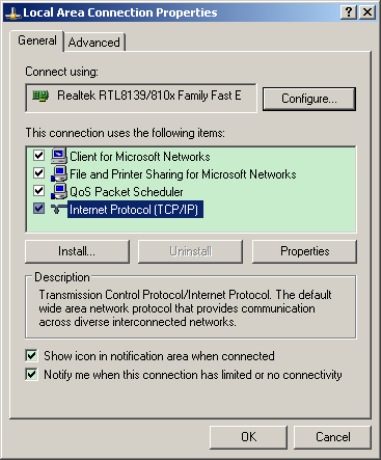 Connection Properties dialog box is displayed, Double-click Internet Protocol (TCP/IP):