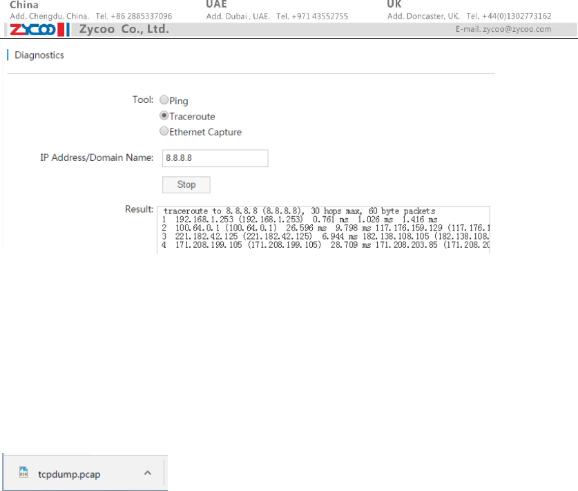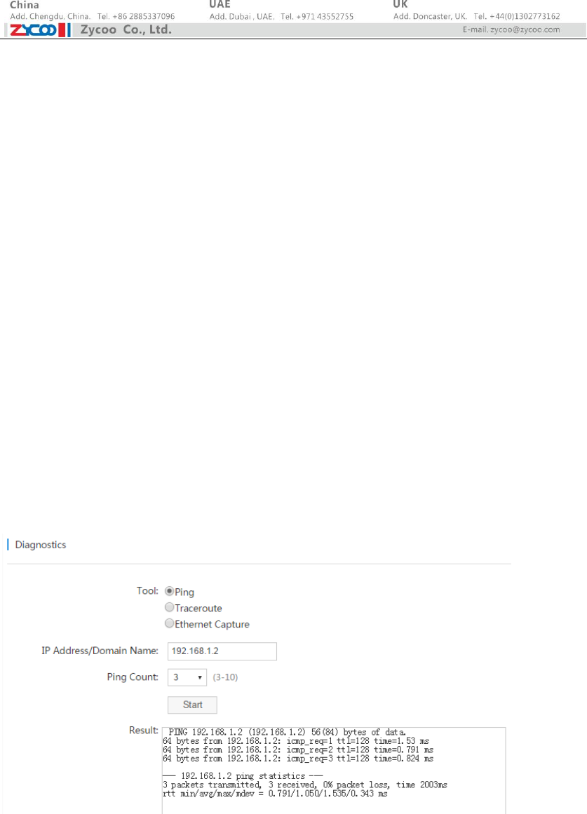 On EX16S Administration->Diagnostics page, users can use PING, Traceroute and Ethernet