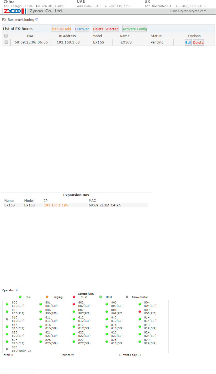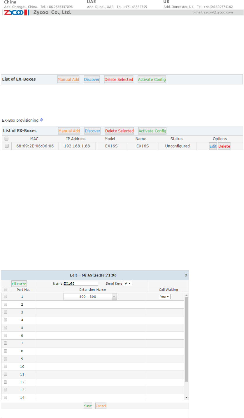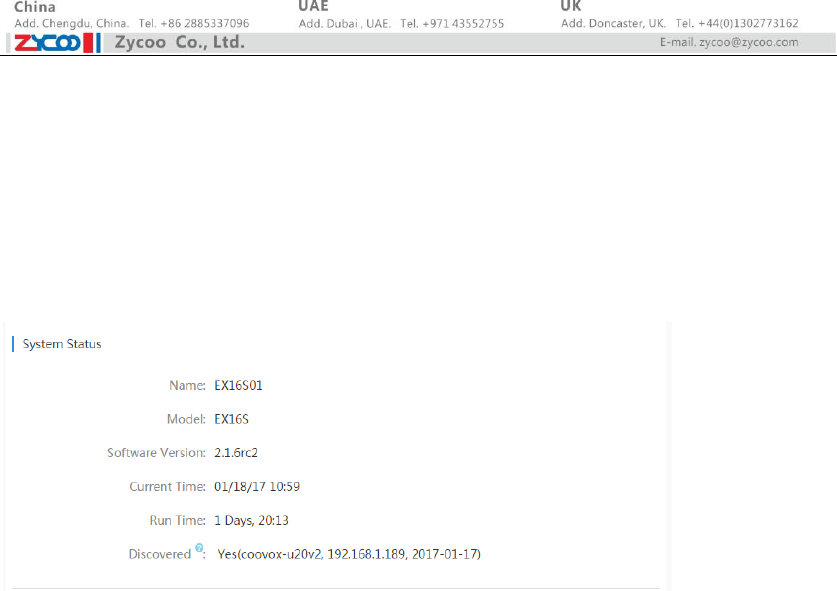 configurations. So you will have to discover this EX16S box again from the CooVox V2 IPPBX Web