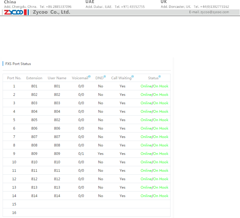 FXS Port Indicator 1 -16