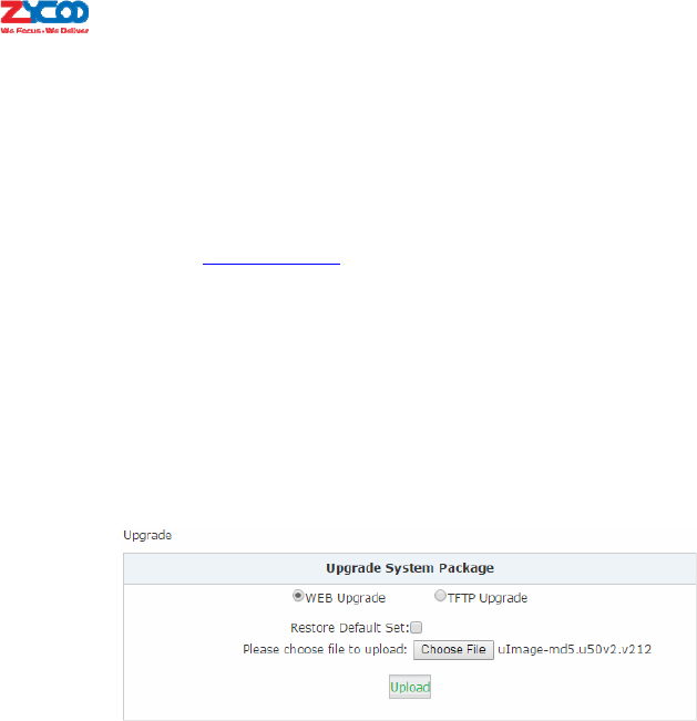 Check“WEBUpgrade”radiobuttonandclick“Browse”buttontolocatethenewfirmwareinyour