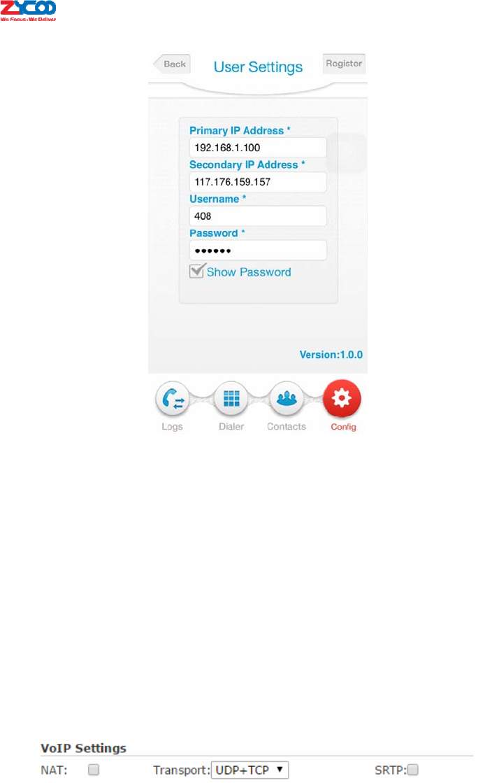 Onceinformationiscomplete,tap“Register”buttontoregistertotheIPPBXsystem.After