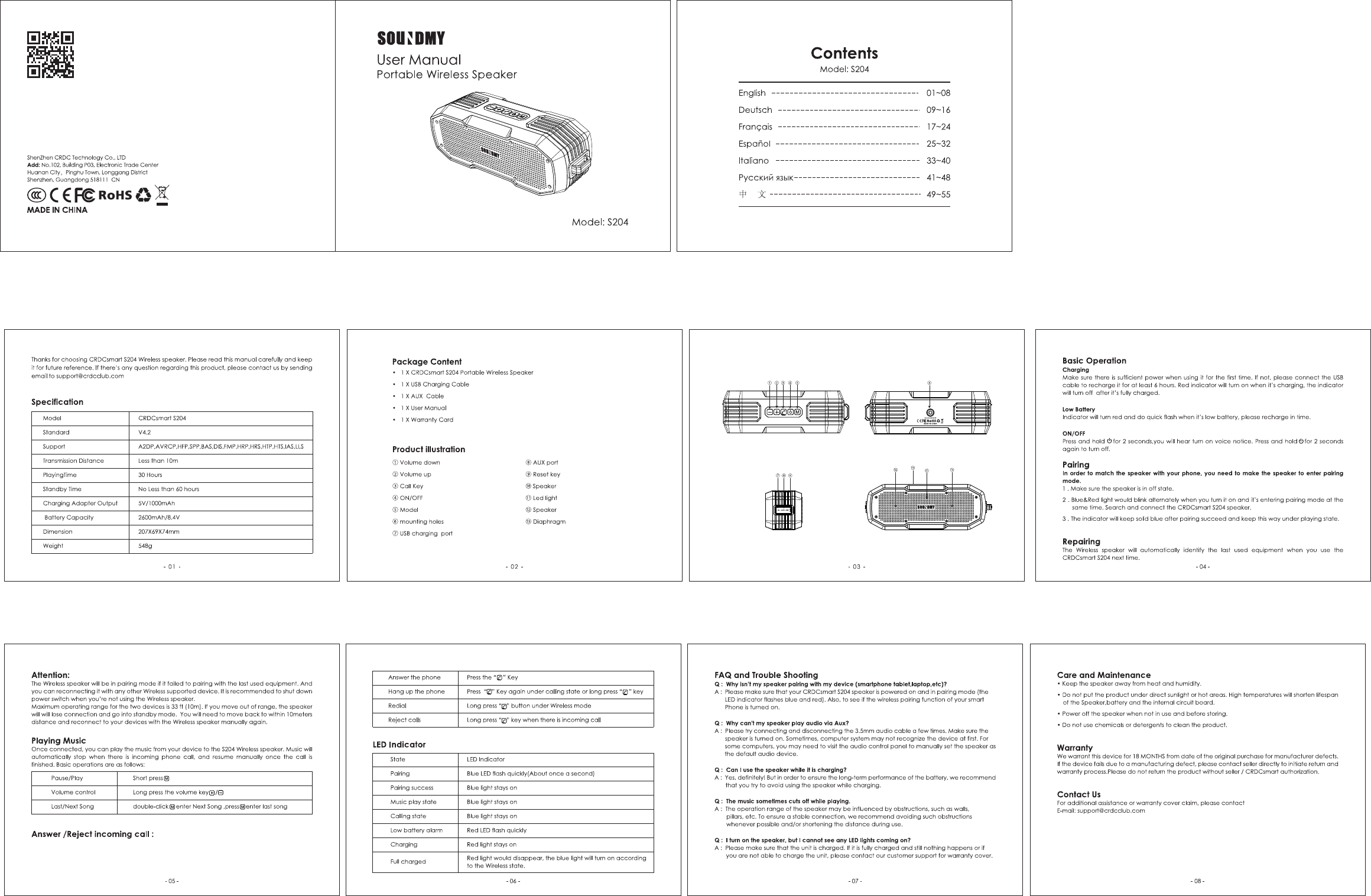 ZanTan Technology S204 Bluetooth speaker User Manual