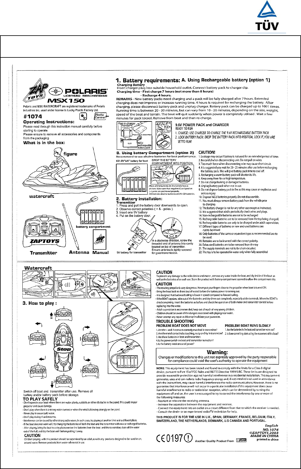Zaptoys 1074-49RX RC Toy Receiver User Manual Auftraggeber