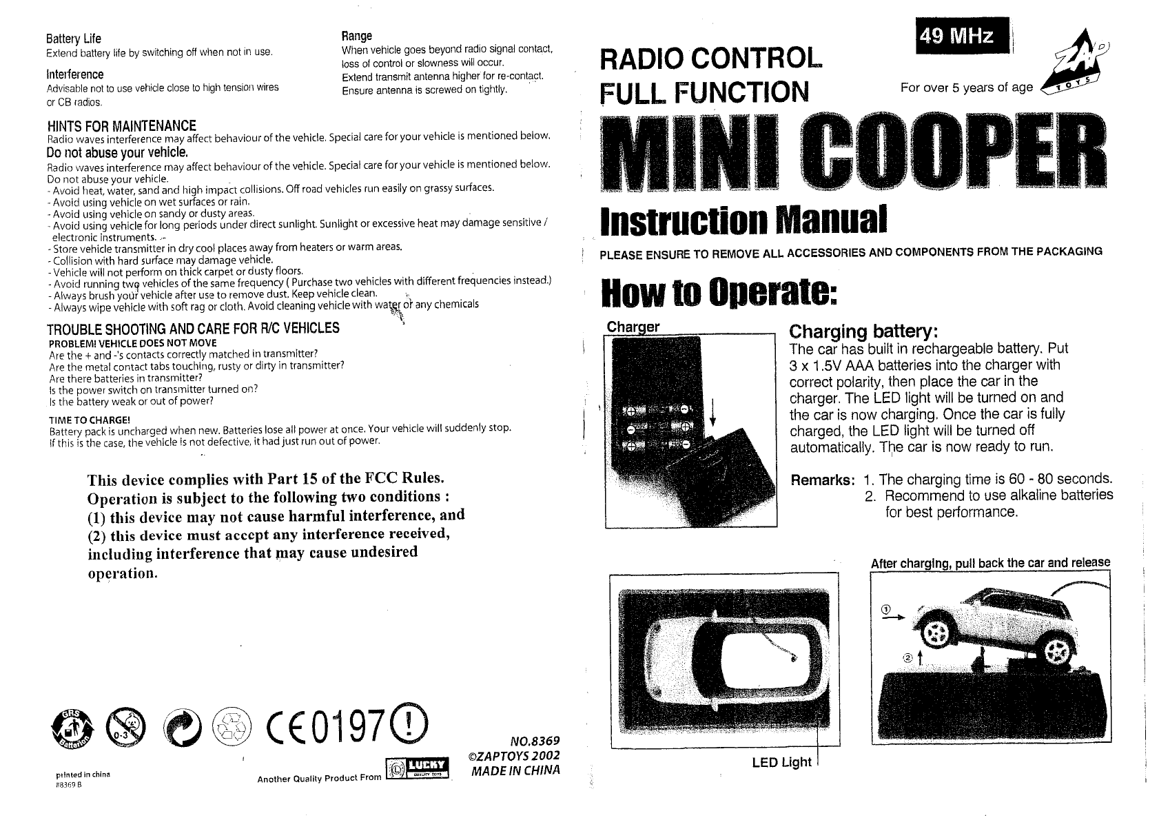 Zaptoys 8369-49 RC Car User Manual