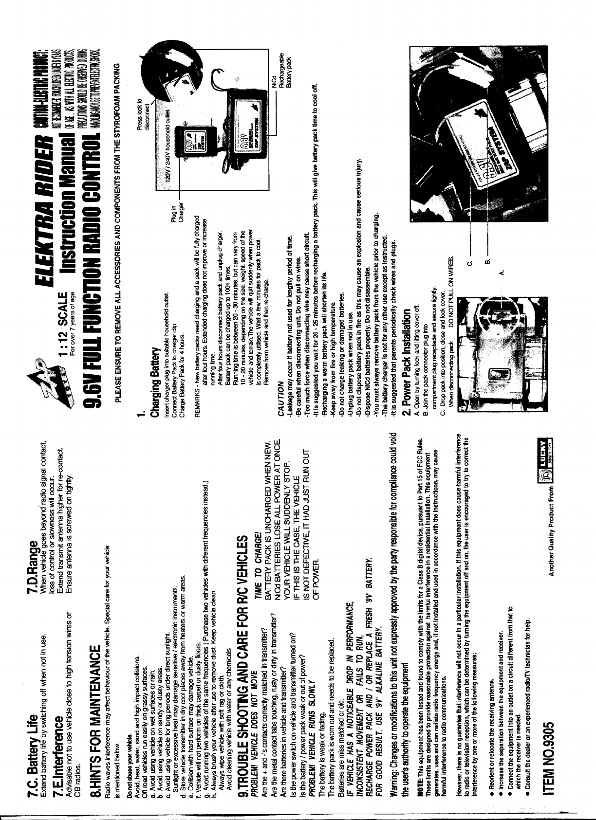 Zaptoys 9303-5 Remote Control Toy Car User Manual