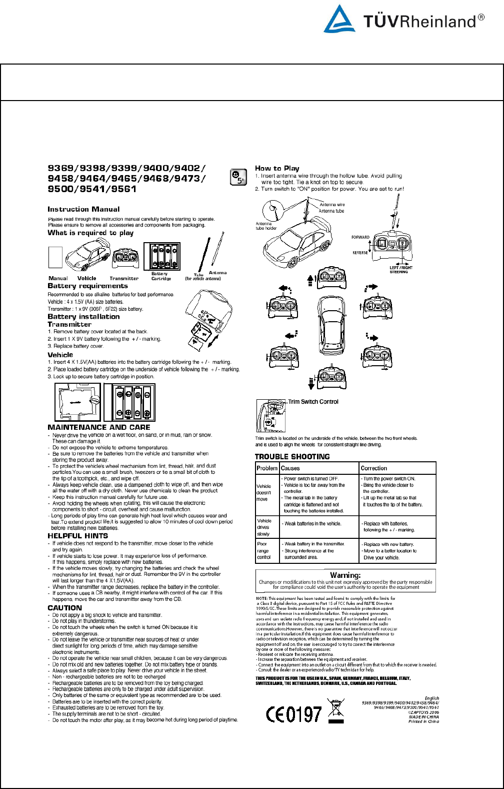Zaptoys 9303A-27TX Radio Control Toy Transmitter User Manual 14018246 001 Appendix 4