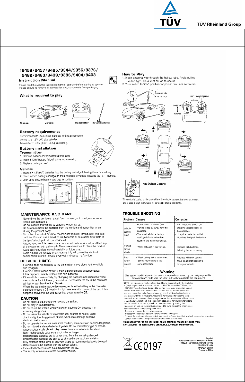 Zaptoys 9304S-27TX Radio Control Toy Transmitter User Manual 14010718 002 Appendix 5