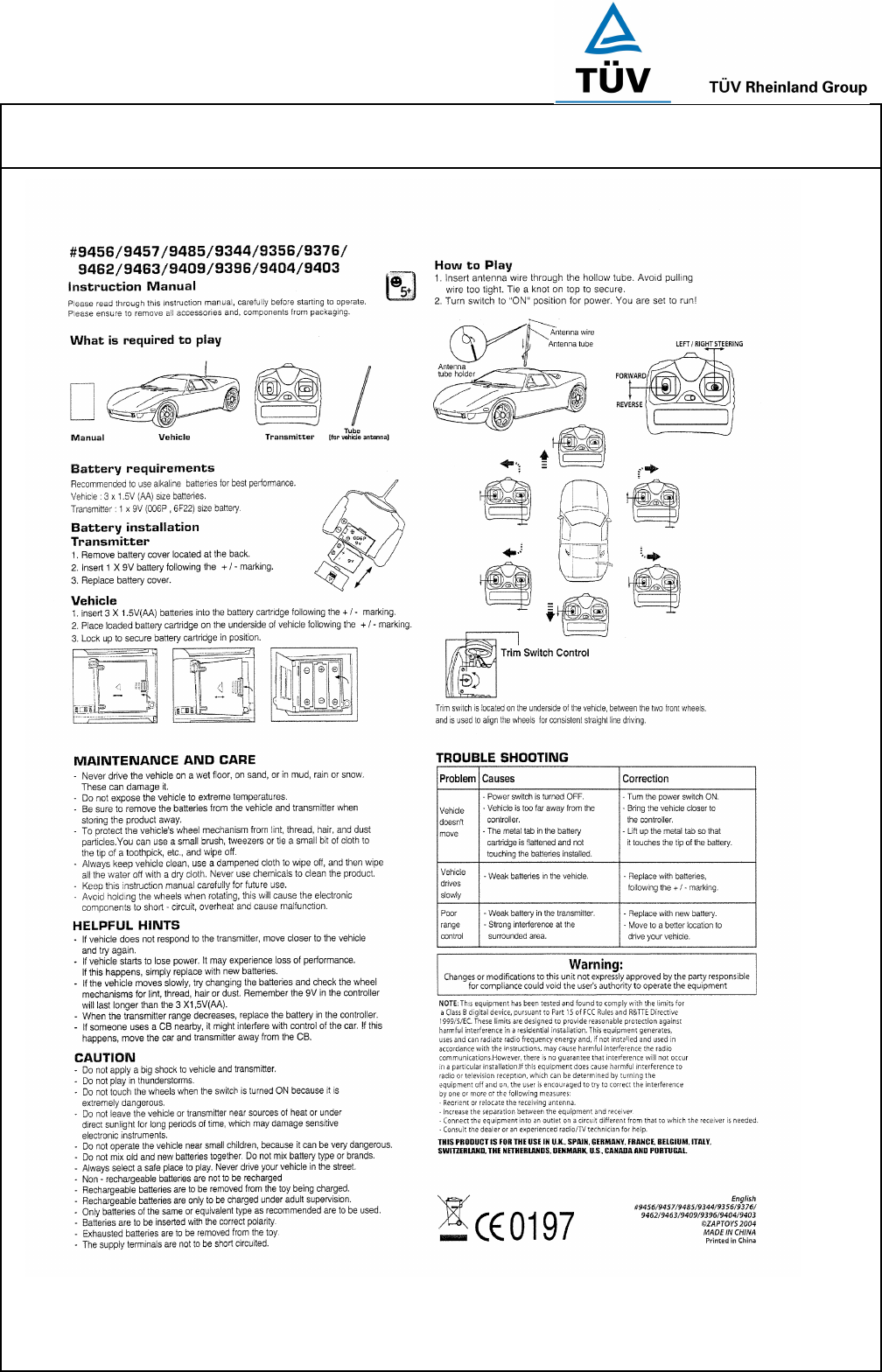Zaptoys 9304S-49TX Radio Control Toy Transmitter User Manual 14011032 001 Appendix 5