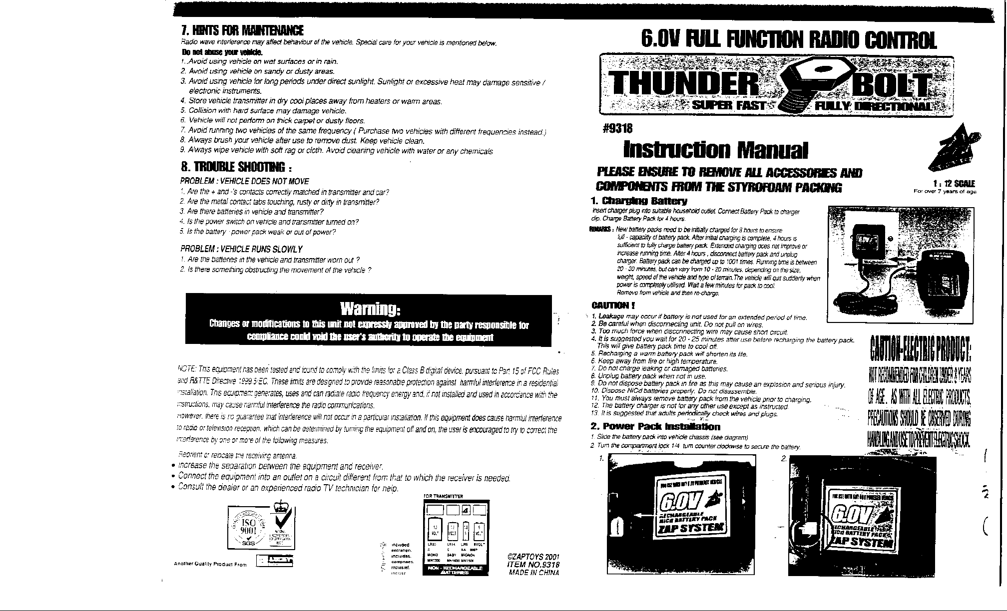 Zaptoys 9318-27 Remote Control Toy Car User Manual
