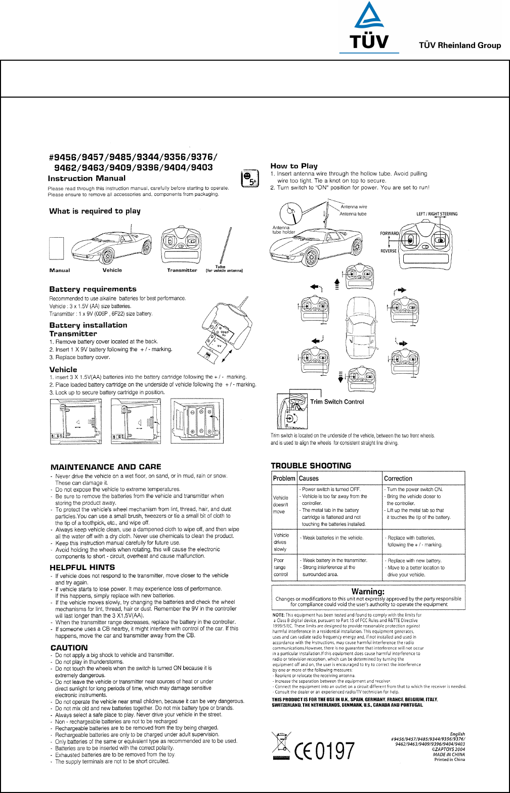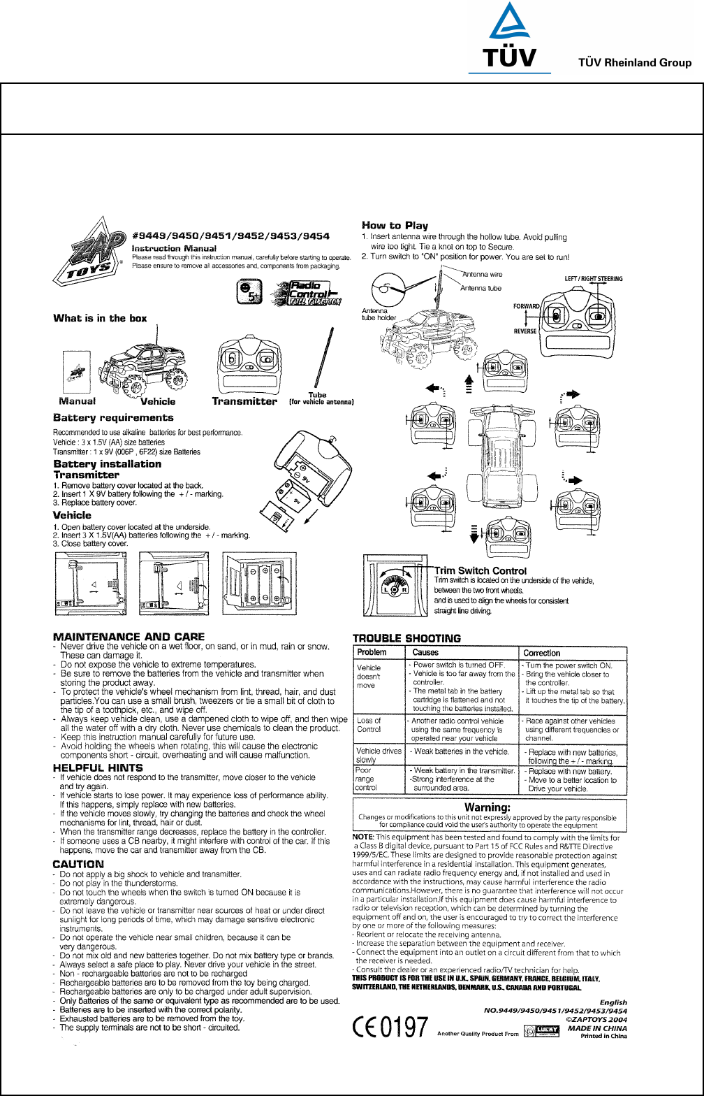 Zaptoys 9344RX-SMT RC Toy Car User Manual 14010720 001 Appendix 4